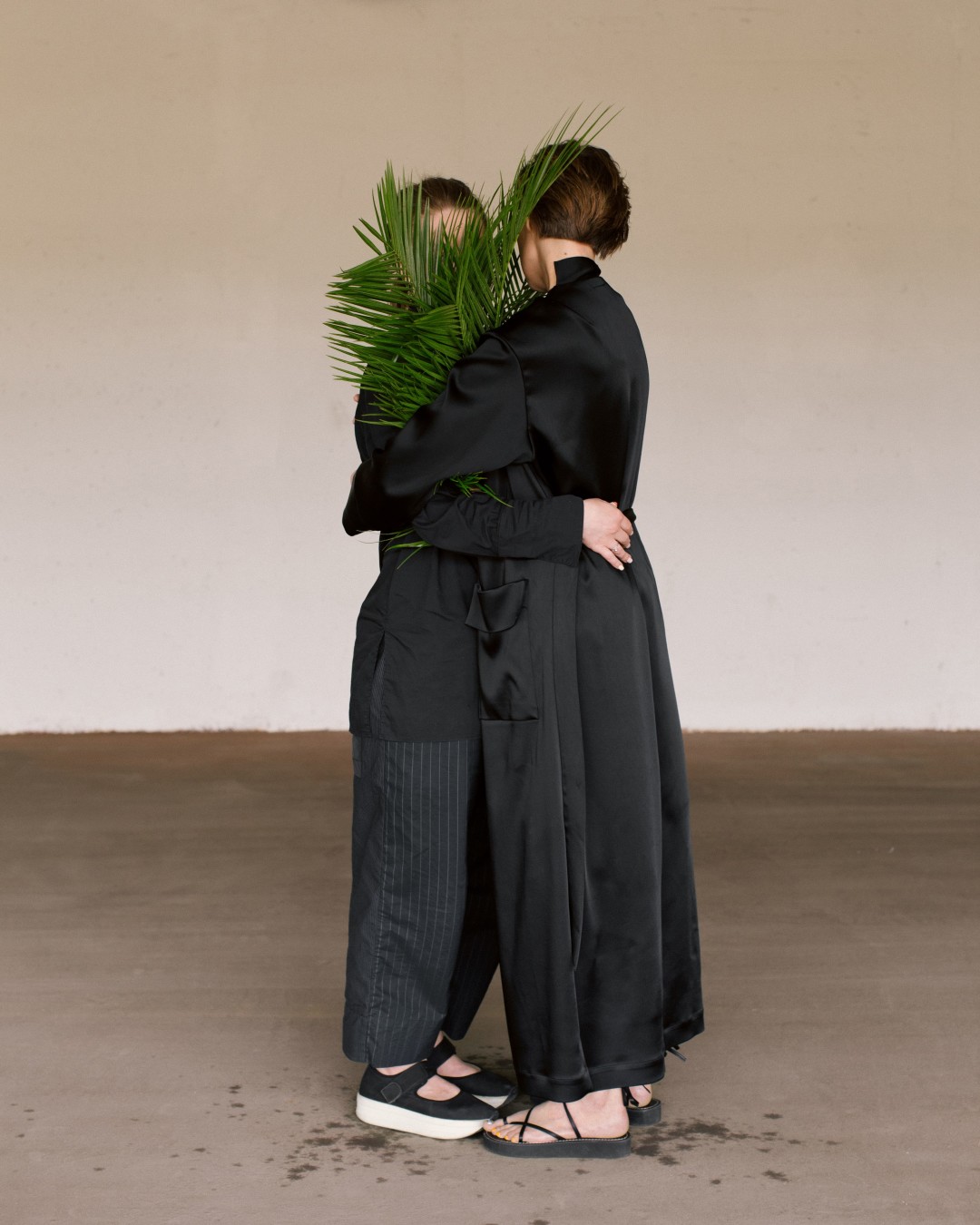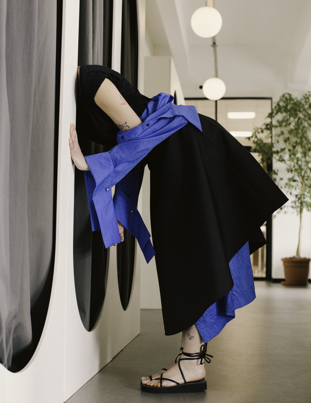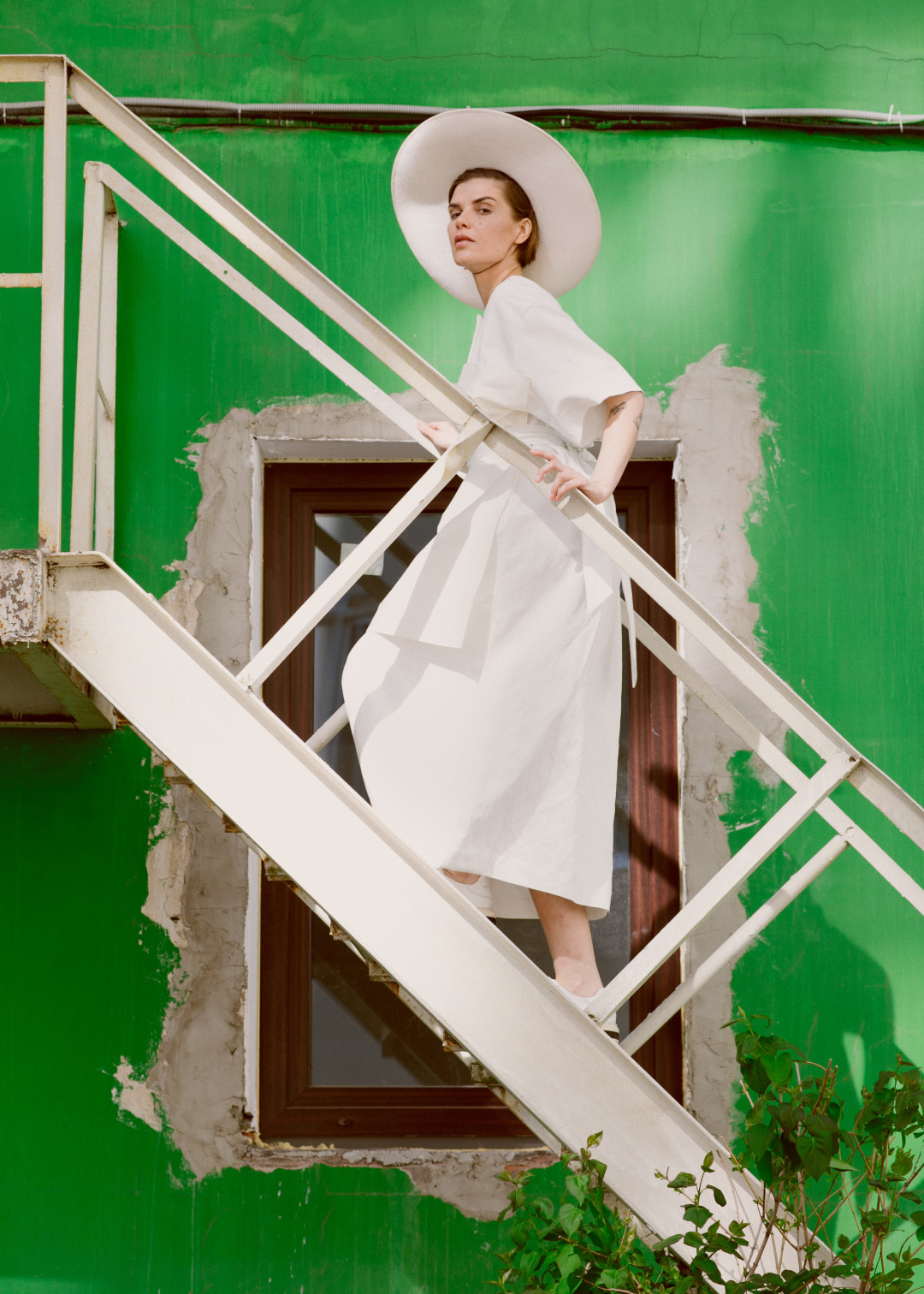 Лукбук новой коллекции Маруся снимала в пространствах завода «Ленполиграфмаш», который продолжает работу как инновационный технопарк и творческий кластер. Недавно в нем открылась студия Marusia Nizovtsova, где вещи дизайнера выставлены в окружении ее картин (как арт-объекты!) и продаются по ценам от 9500 до 19 000 рублей.