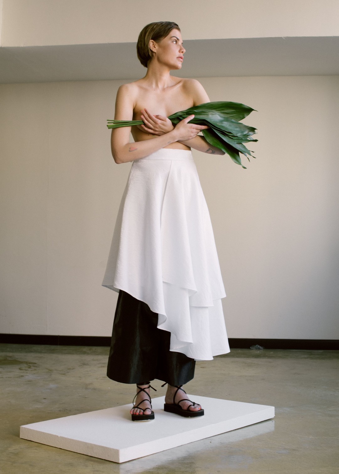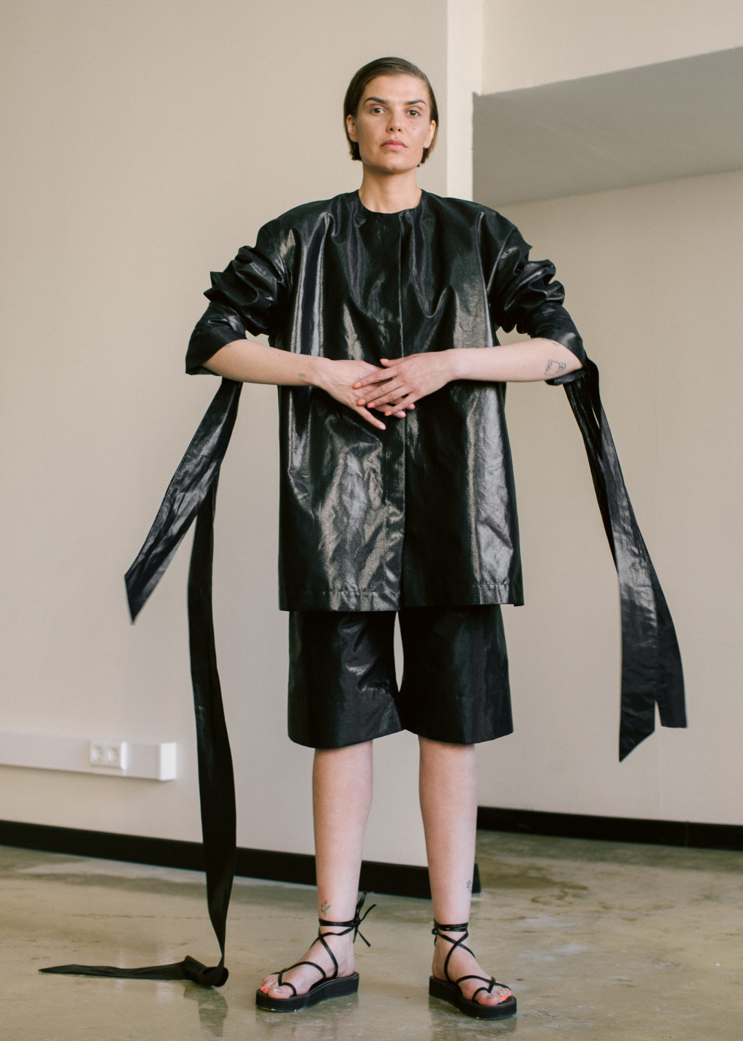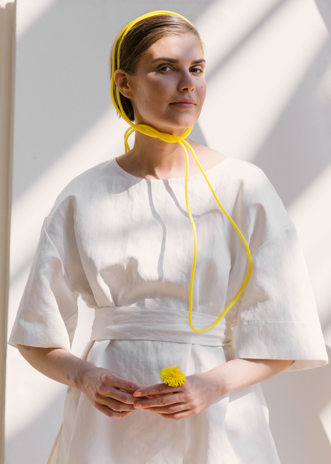 Лукбук новой коллекции Маруся снимала в пространствах завода «Ленполиграфмаш», который продолжает работу как инновационный технопарк и творческий кластер. Недавно в нем открылась студия Marusia Nizovtsova, где вещи дизайнера выставлены в окружении ее картин (как арт-объекты!) и продаются по ценам от 9500 до 19 000 рублей.