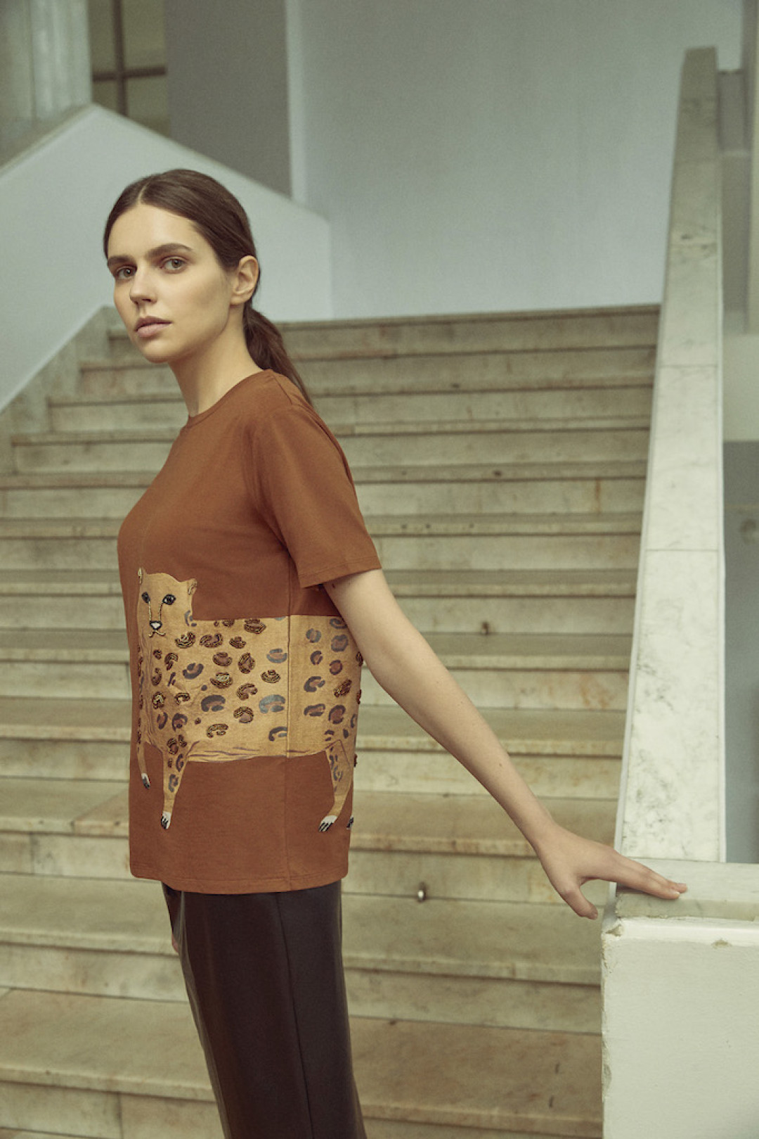 Другие вещи Akhmadullina Dreams — оверсайзовые жакеты, брюки-палаццо, кожаные юбки, джинсовые куртки и удлиненные пальто — минималистичны и выполнены в бежевой, серой и ретро-коричневой гамме. Все их можно купить в новых петербургских магазинах Akhmadullina Dreams — в ТРЦ «Галерея» и ТЦ «Охта Молл», а также на сайте akhmadullinadreams.com по ценам от 2999 рублей (за футболку с принтом) до 24 999 рублей (за пальто в клетку).
