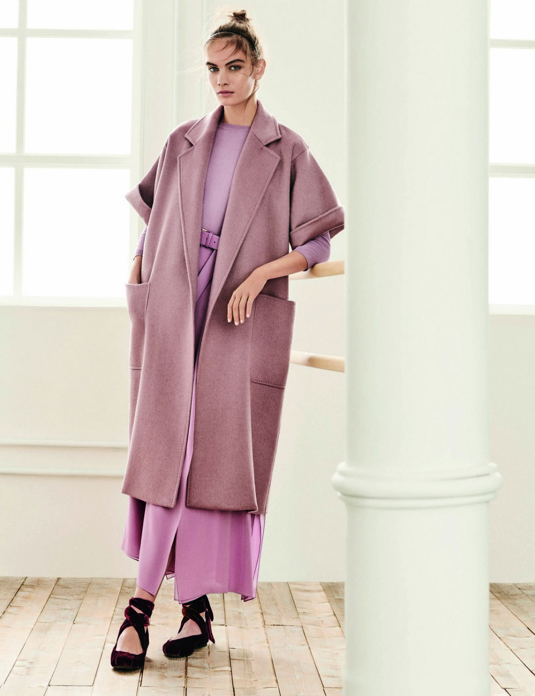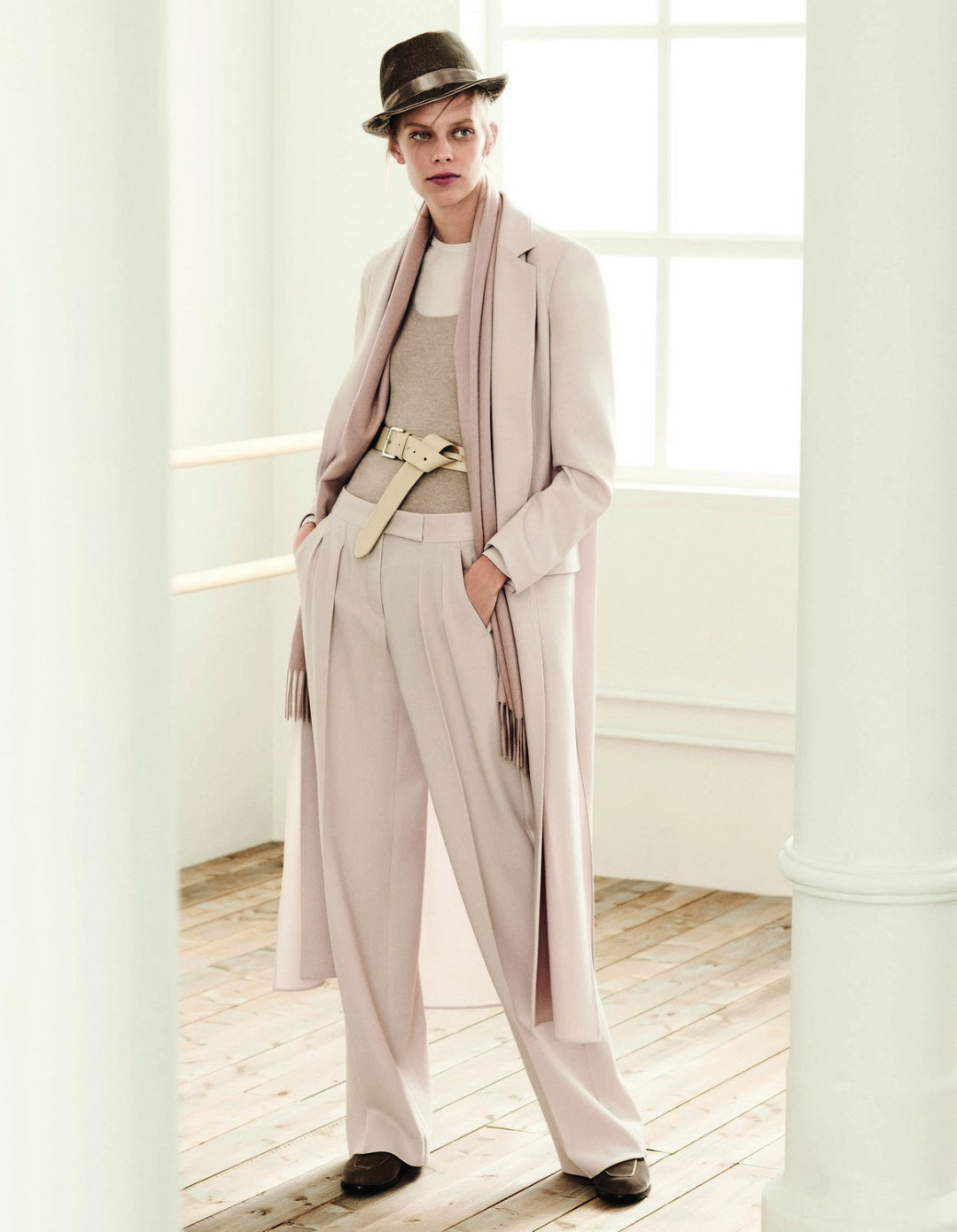 Лейтмотивом новой коллекции Max Mara стал контраст мужского и женского начал. Дизайнеров бренда вдохновила многолетняя дружба легендарных звезд балета Рудольфа Нуреева и Марго Фонтейн. Так, струящийся шифон и нежный шелк сочетаются с мужским кроем шляп в стиле денди, мокасинами и кашемировыми сапогами. Мягкая цветовая палитра коллекции заимствует оттенки макияжа: кремовый, пудровый, античная роза, сиреневый и медный смело разбавляют контрастным черным, белым или дополняют цветом румян.