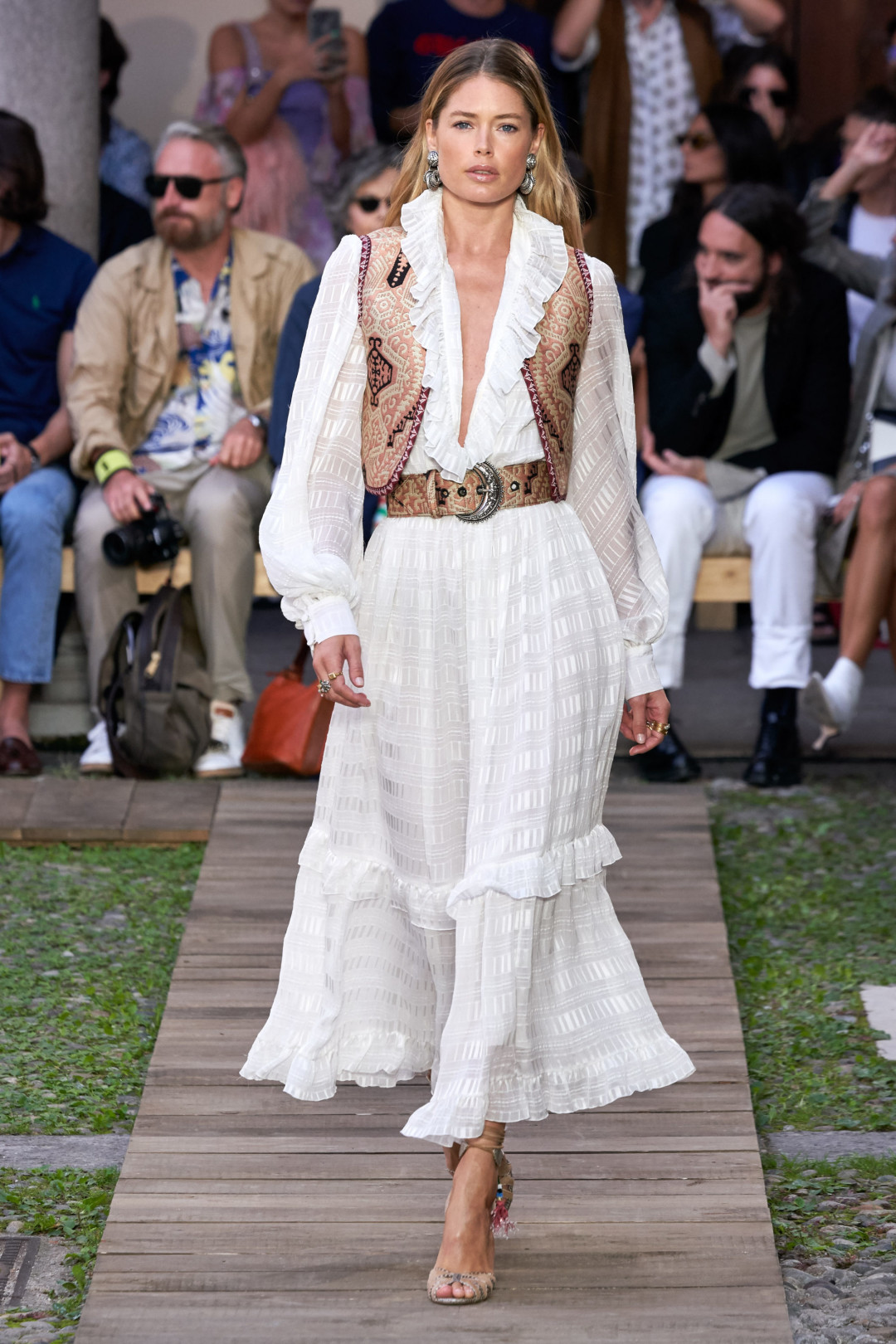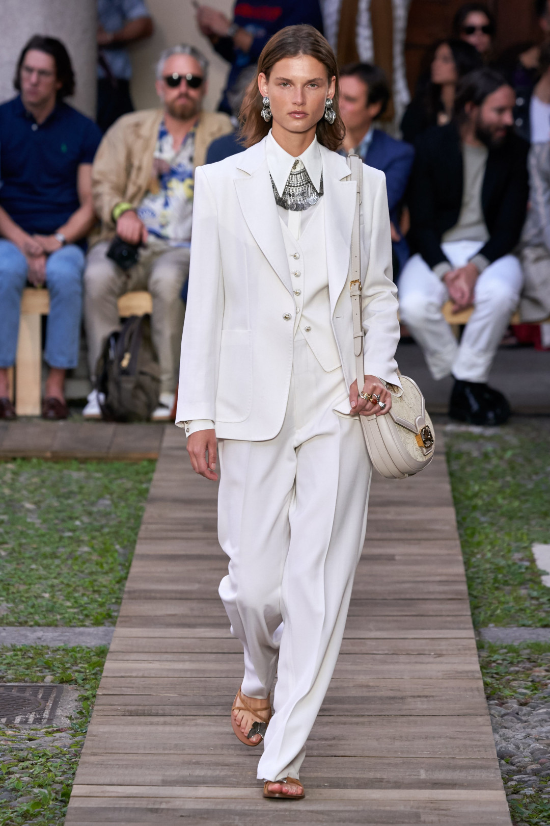 В некоторых случаях — например, на весенне-летнем шоу Etro — белый костюм шел в «тройке» вместе с жилетом. Однако данную вещь, которую мы привыкли видеть в мужском гардеробе, можно носить и отдельно — с ультракороткими шортами, кожаной юбкой или сверху платья в викторианской стилистике.