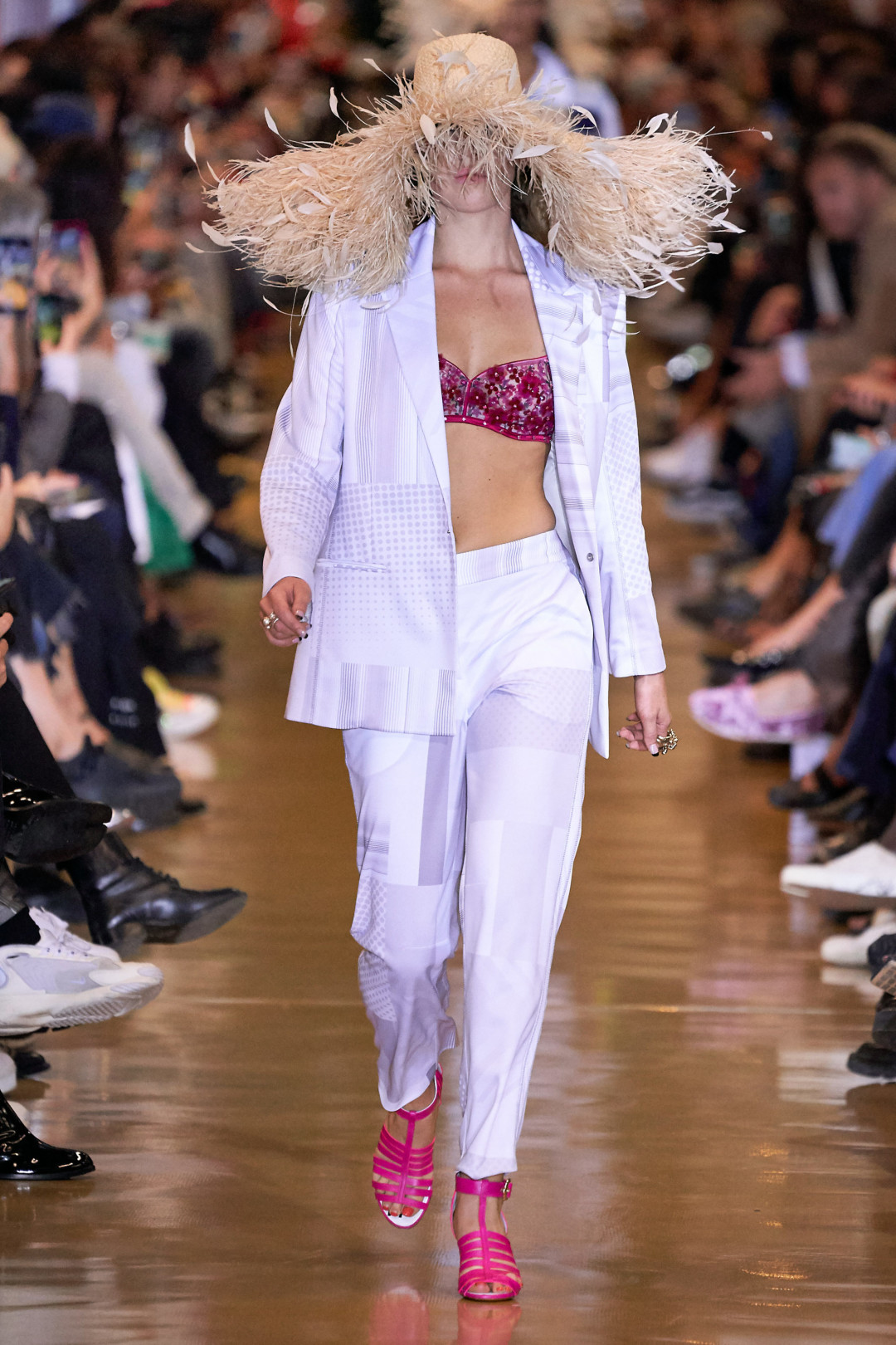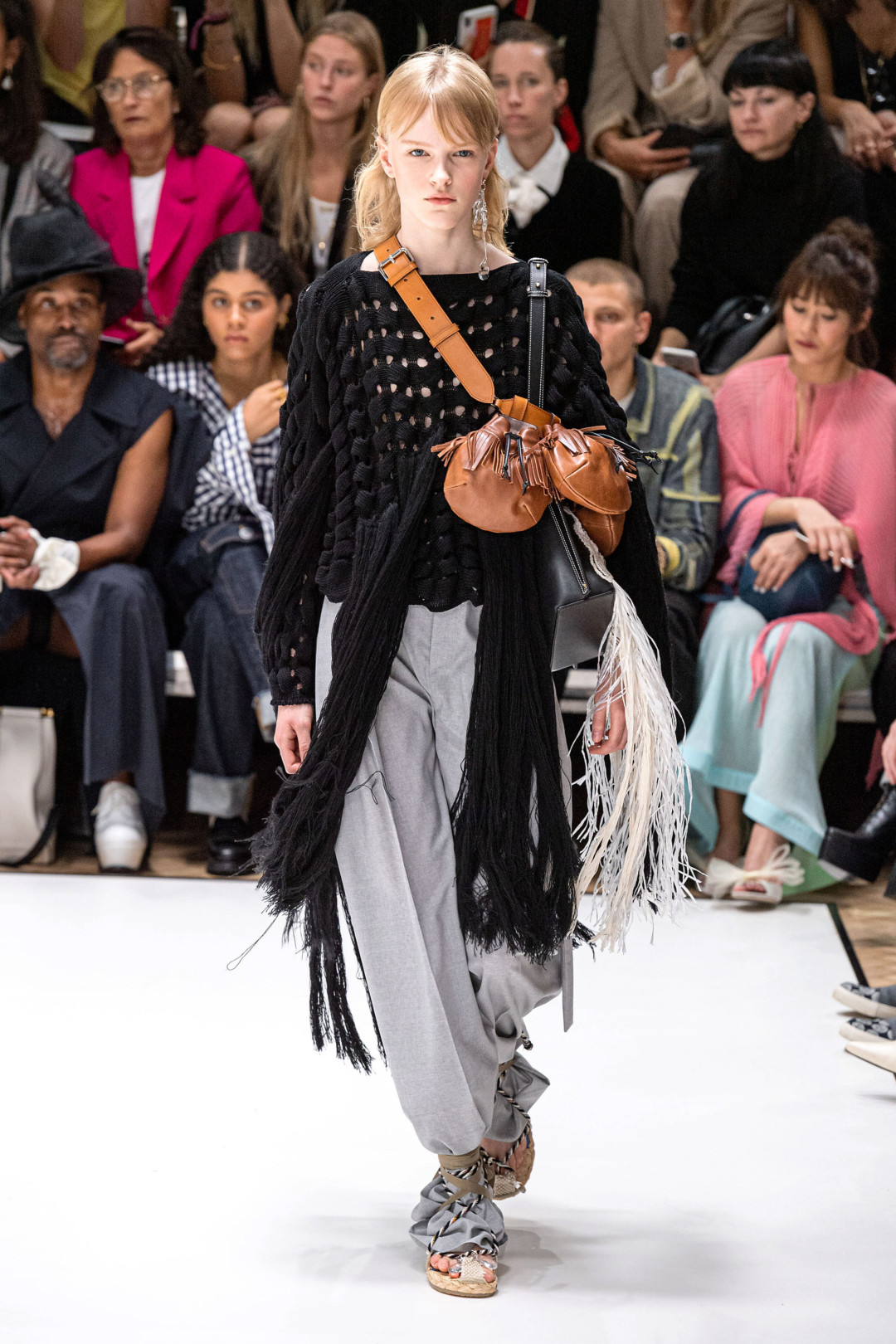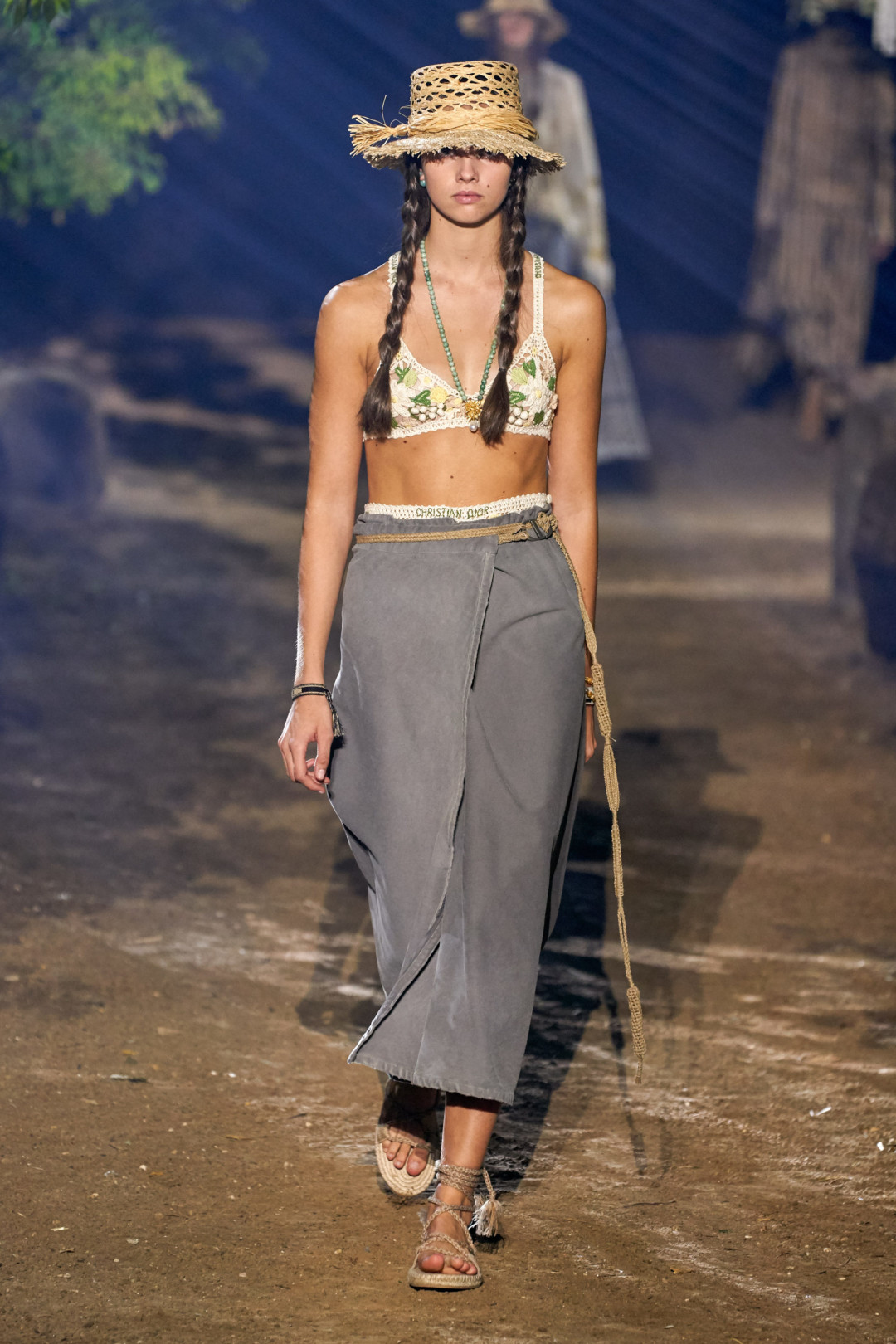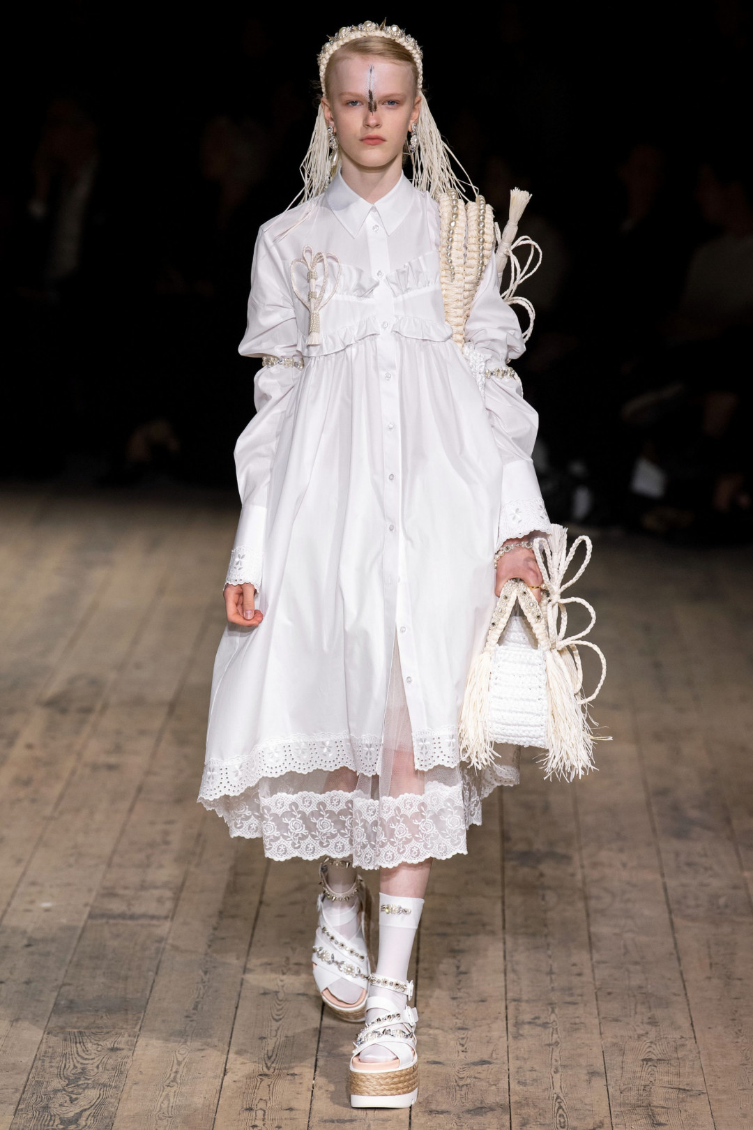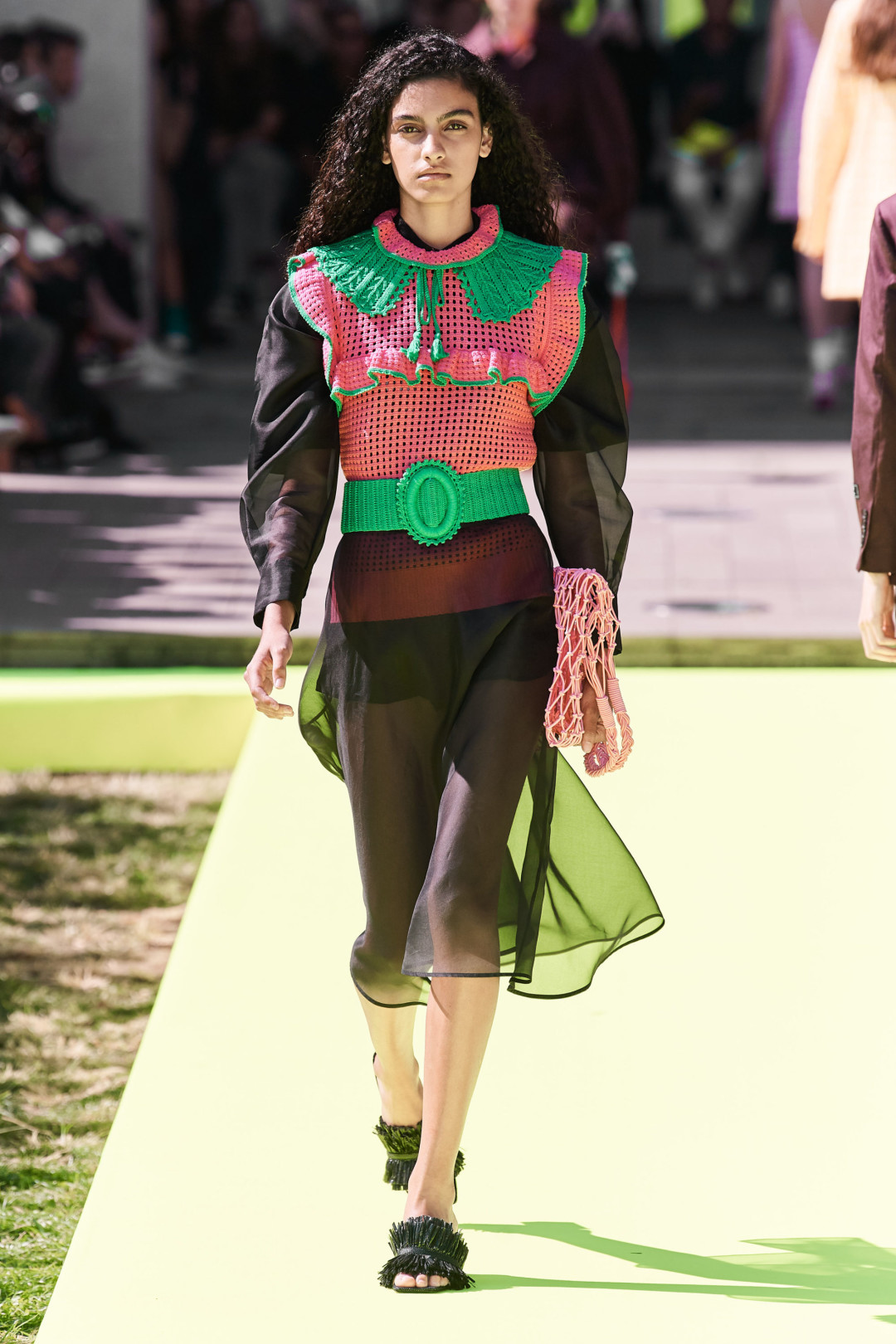 В новом сезоне дизайнеры плетут не только из шерсти, но и из соломы: широкополые шляпы, летние сандалии и даже накидки на платья с вставками из жемчуга. Носить последние в повседневной жизни будет непросто (только представьте, как вы спускаетесь в них в метро или садитесь в машину) — куда лучше купить альтернативы из светлого льна, показанные на шоу MSGM и Anteprima.