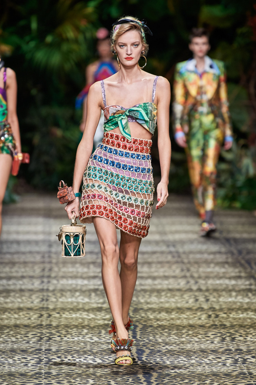 Парад платьев с тропическим принтом на показе Versace — самый запоминающийся на этой Неделе моды, но далеко не единственный. Те же мотивы есть в коллекциях Fendi, Dolce & Gabbana, Valentino, Bottega Veneta и Burberry, причем с изображением самих тропических обитателей. Особенной популярностью у дизайнеров почему-то пользуются обезьяны, перепрыгивающие с бланковых рубашек на длинные юбки и вечерние платья: кажется, в следующем году именно они станут символом удачи (в плане шоппинга и создания селфи — так точно!).
