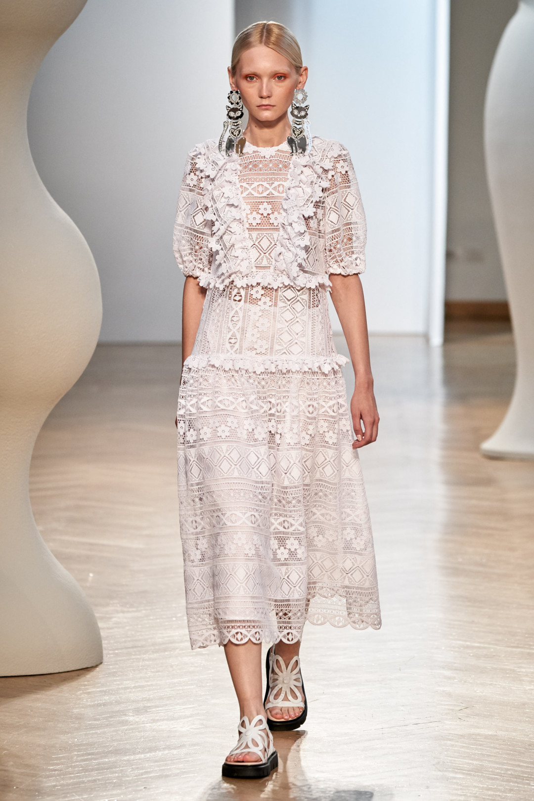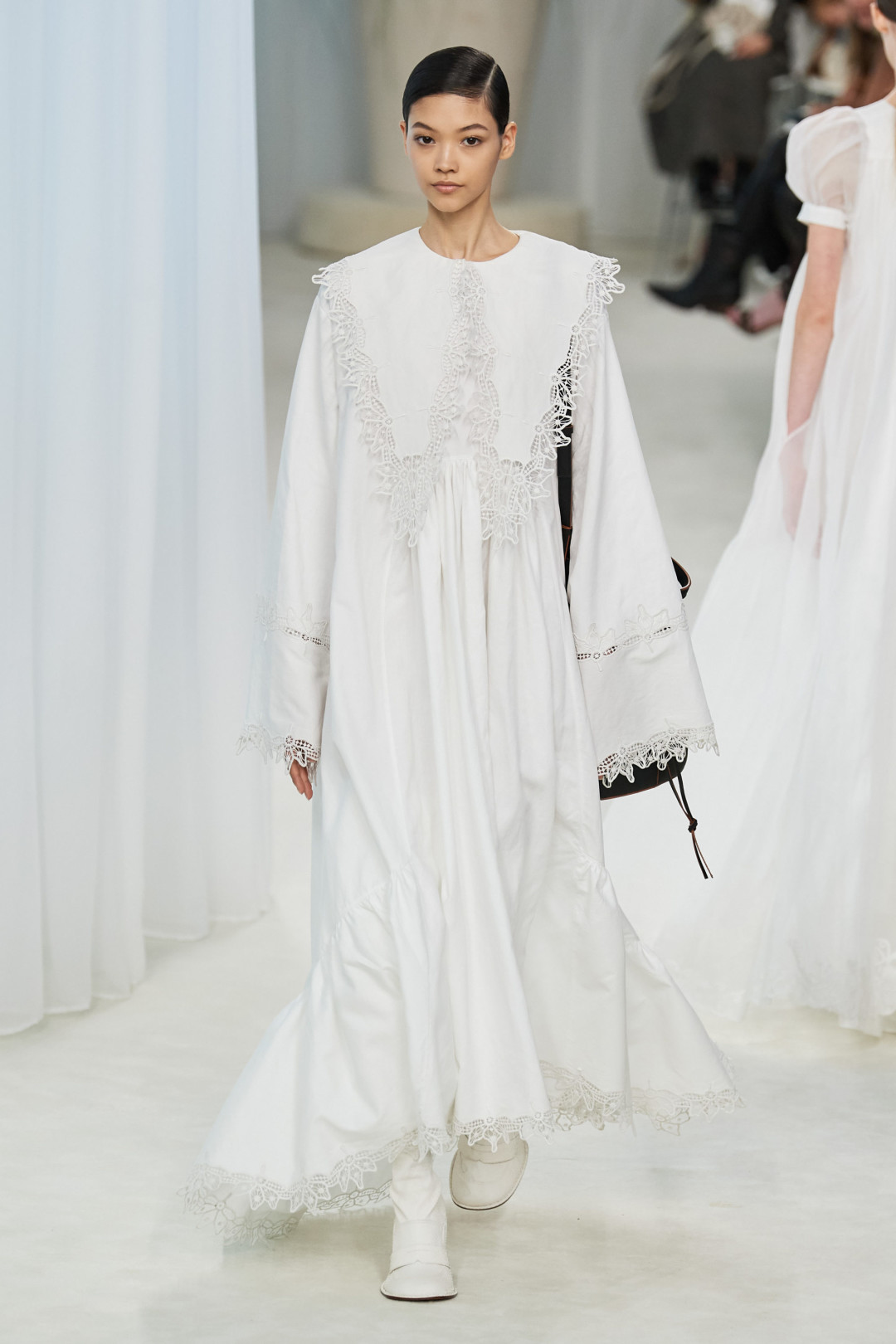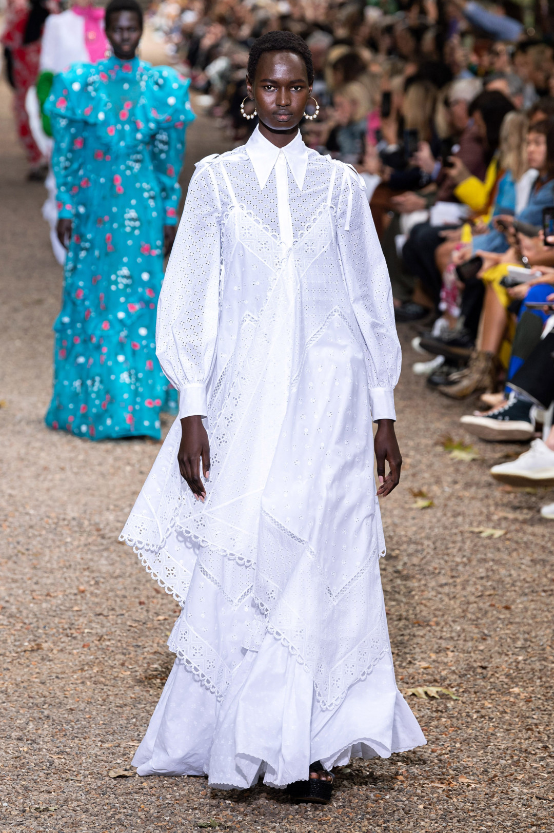 Идеальное белое платье — если говорить о повседневном, а не свадебном — должно напоминать образ из атмосферного старого фильма. Такое есть, к примеру, в коллекциях Burberry, Erdem, Simone Rocha и других английских брендов, которые обращаются к исторической вышивке, совмещающей технику шитья и игольчатого кружева и ставшей популярной в Великобритании 19 века. Для большей аутентичности носить такие платья стоит с винтажными украшениями, узорчатыми сандалиями и плетеными сумками (а еще лучше — с букетом полевых цветов!).
