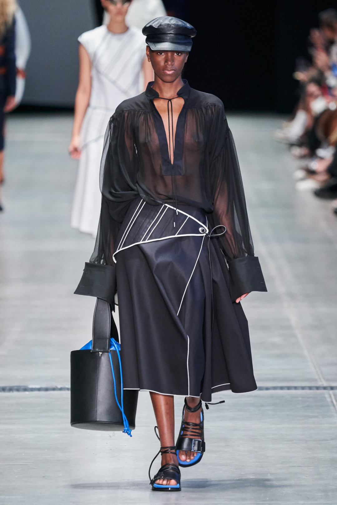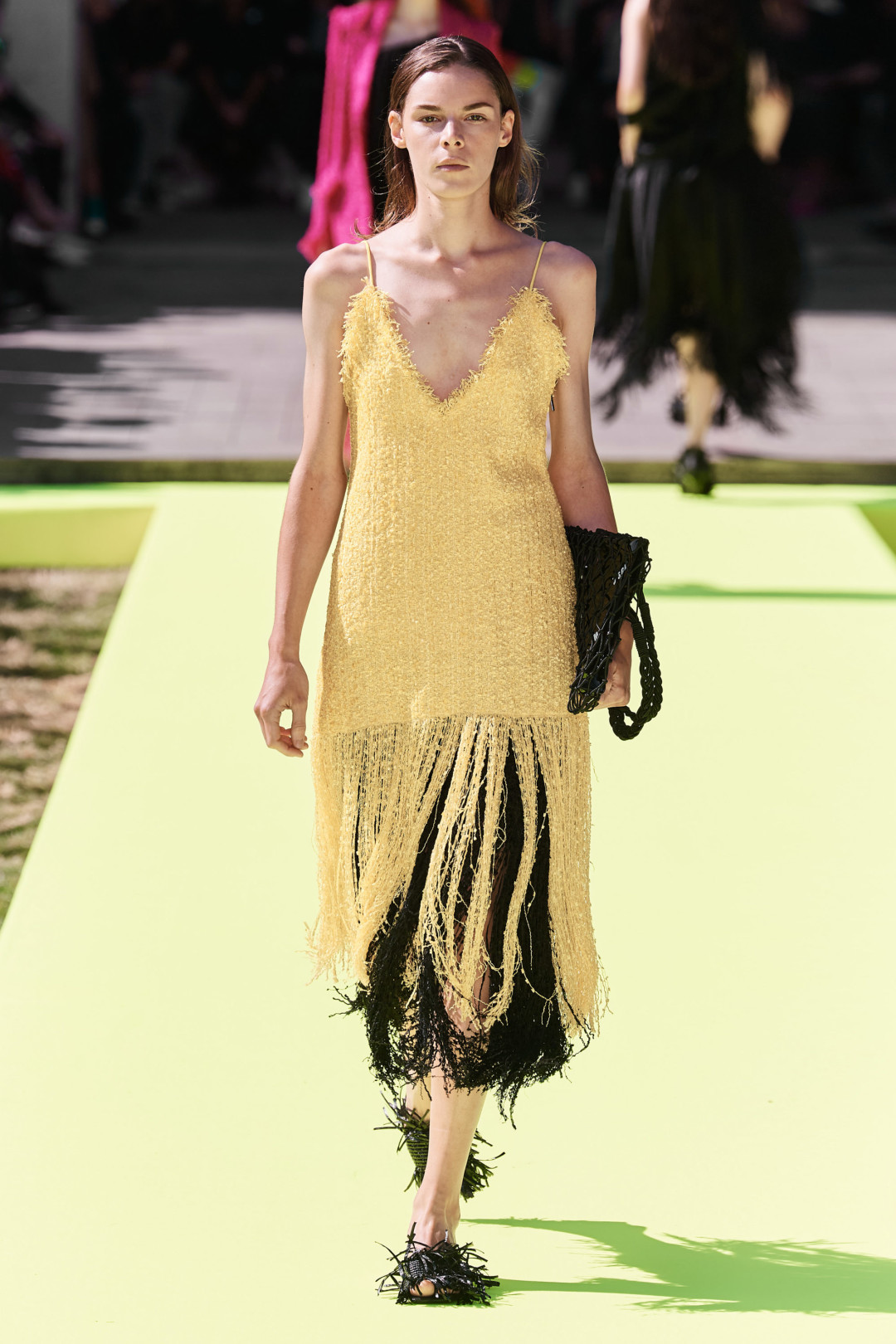 В прошлых сезонах бренды настаивали на том, чтобы мы носили купальники не только на пляже (и Эмбер Валетта вняла этому совету, появившись в модели Saint Laurent на Балу Института костюма), а в следующем — убеждают нас повседневно ходить еще в бюстгальтерах. Правда, делают их не такими радикально-прозрачными, как в underwear-коллекциях: Dion Lee — из черной кожи, Fendi — из однотонного трикотажа, а Dior — из кружева с цветочной вышивкой. Но нам больше всего нравится вариант от Джонатана Андерсона: дизайнер выпустил бра из кристаллов в виде знака бесконечности, которые украсили минималистичные, драпированные и асимметричные платья.