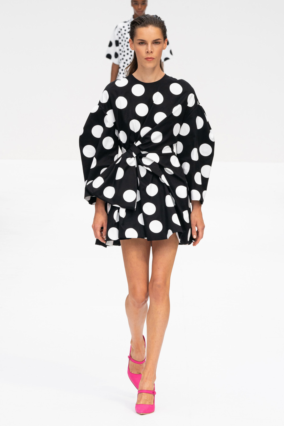 Гороховый принт — такая же классика жанра, как клетка, полоска или «гусиная лапка». Однако в весенне-летних коллекциях его так много, что мимо просто невозможно пройти: хотим оверсайзовый жакет от Balmain, пижамный костюм от Erdem и декольтированное платье от Michael Kors Collection!