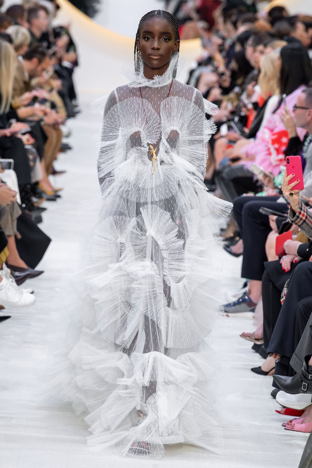 Выход Дженнифер Лопес в иконическом платье Versace, коллаборация Дриса ван Нотена и Кристиана Лакруа, дебют Ренаты Литвиновой в качестве модели — ничто не вызывает столько оваций (и даже слез!), сколько одежда от Пьерпаоло Пиччоли для Valentino. Вчерашний показ весенне-летней коллекции, прошедший в Доме Инвалидов в Париже, начался с двенадцати образов в белом цвете, вариаций обычной бланковой рубашки. Она превращалась в платье, обильно декорировалась перьями, получала драпировки и рукава-буффы, а также стилизовалась золотыми каффами и ожерельями. «Ищите необычное в простом», — прокомментировал свой ход дизайнер.