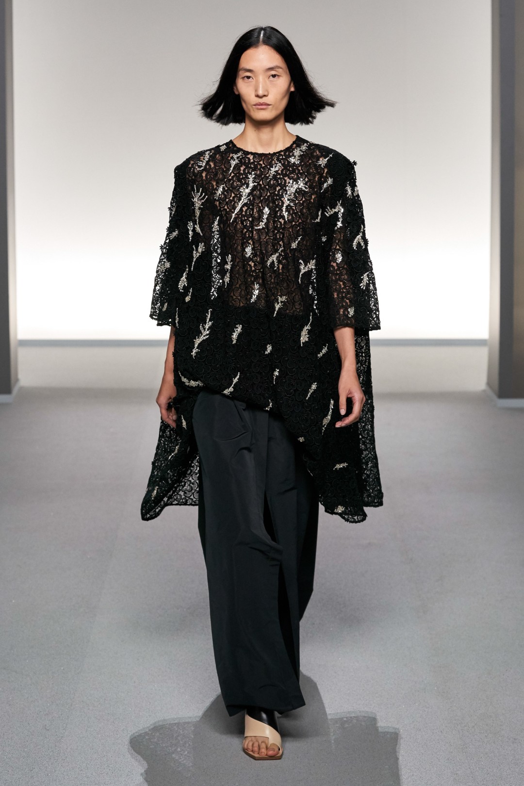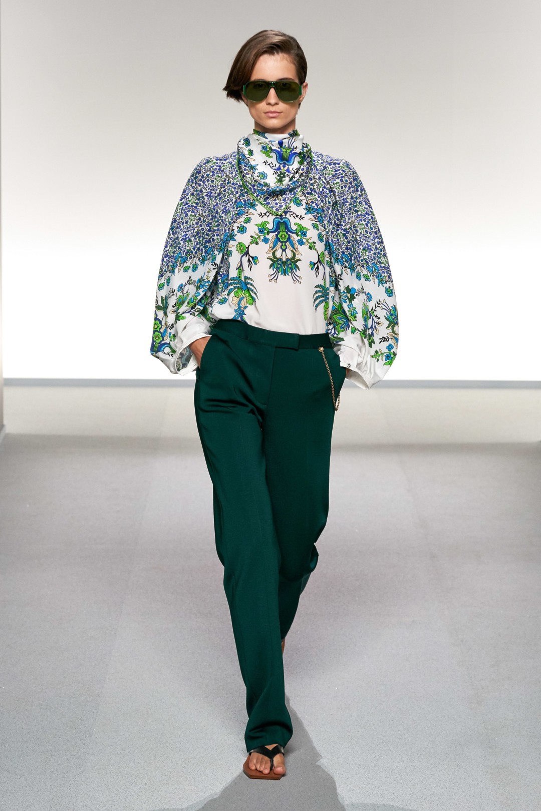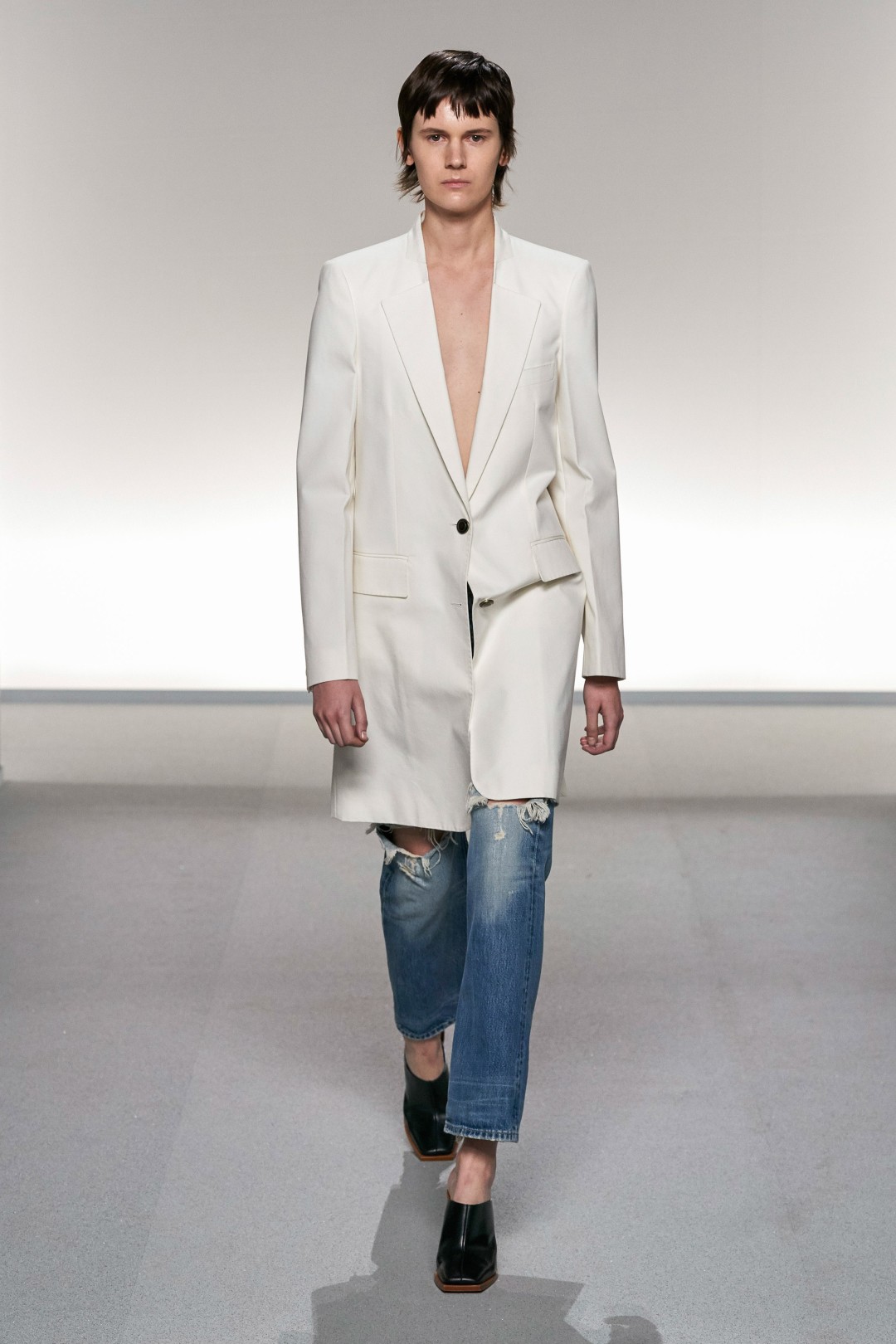 Классические костюмы в «гусиную лапку», кожаные юбки с завышенной талией, белые жакеты, надетые вместе с драными джинсами, и нюдовые бра, выполненные из нежнейшего шелка, напоминали революционный для 1990-х годов минимализм. Только на этот раз стайлинг им делали вещи с «парижским шиком»: блузы с объемными рукавами, джемперы с цветочной вышивкой, платья со сложными драпировками и кружевные туники.