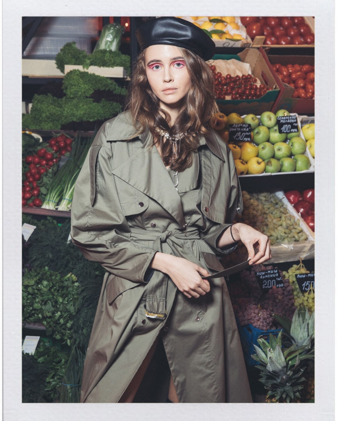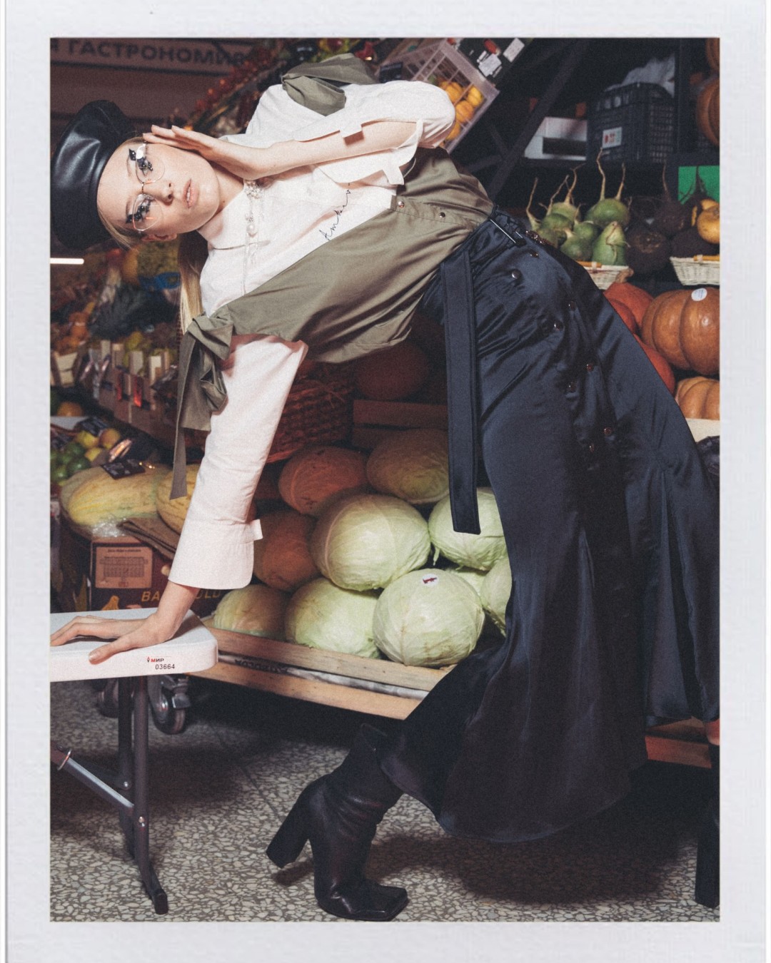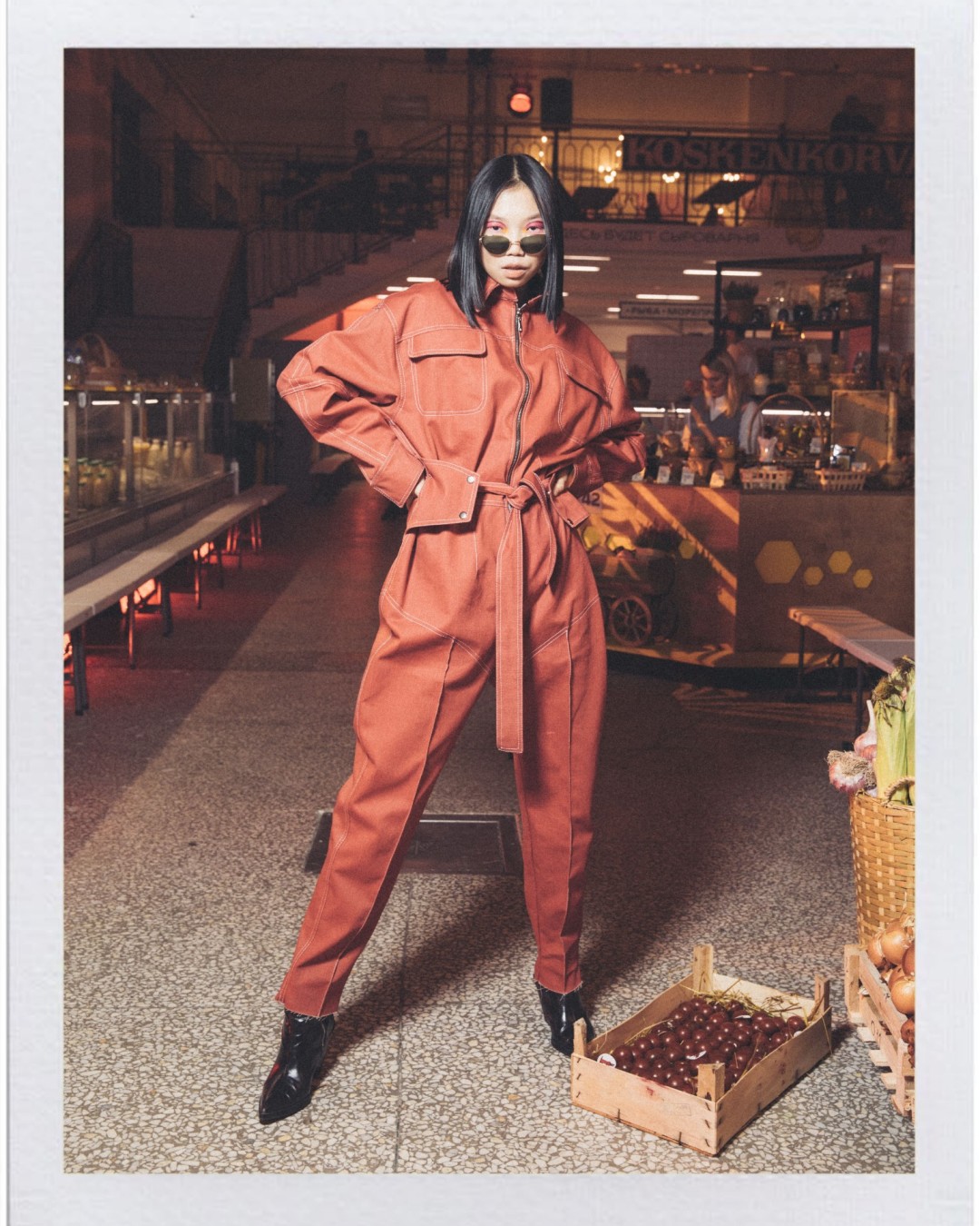 В новом дропе команда Saint-Tokyo продолжила видоизменять классические модели: базовые пиджаки «ломались» поясами и затяжками, юбки-трапеции были сделаны из лаковой кожи, а свитшоты с голыми плечами и объемными рукавами — отшиты по лекалам легких блуз. Некоторые вещи получили принты «экстраверт» и «интроверт», рассказывая о том, что в век социальных сетей каждому — вне зависимости от типа личности — приходится быть ярким и открытым. Это же подчеркивали и шляпы от марки Cocoshnick, с которыми Saint-Tokyo сотрудничают второй сезон подряд: экстраверта они выделяют из толпы, а интроверта — скрывают от лишних глаз.