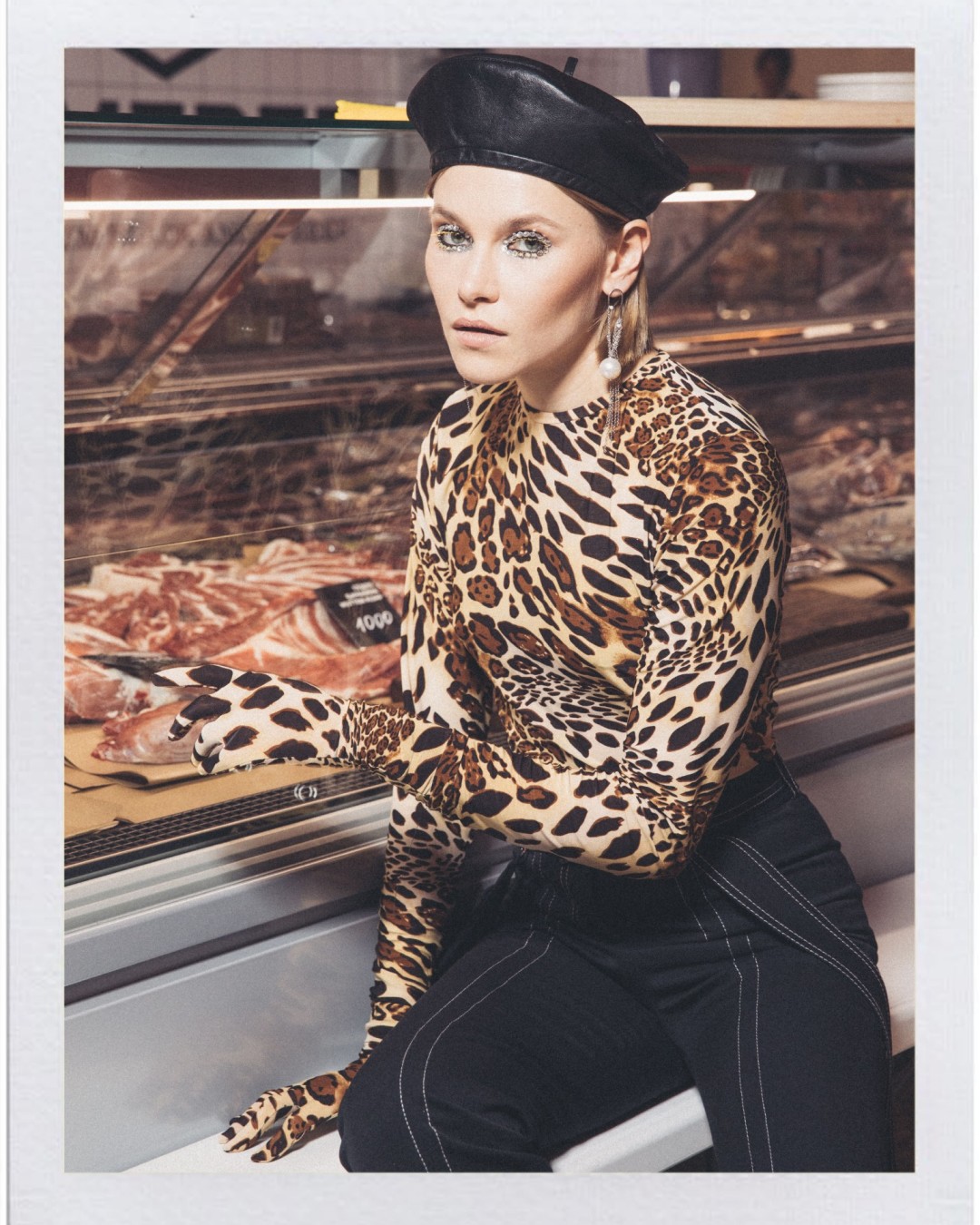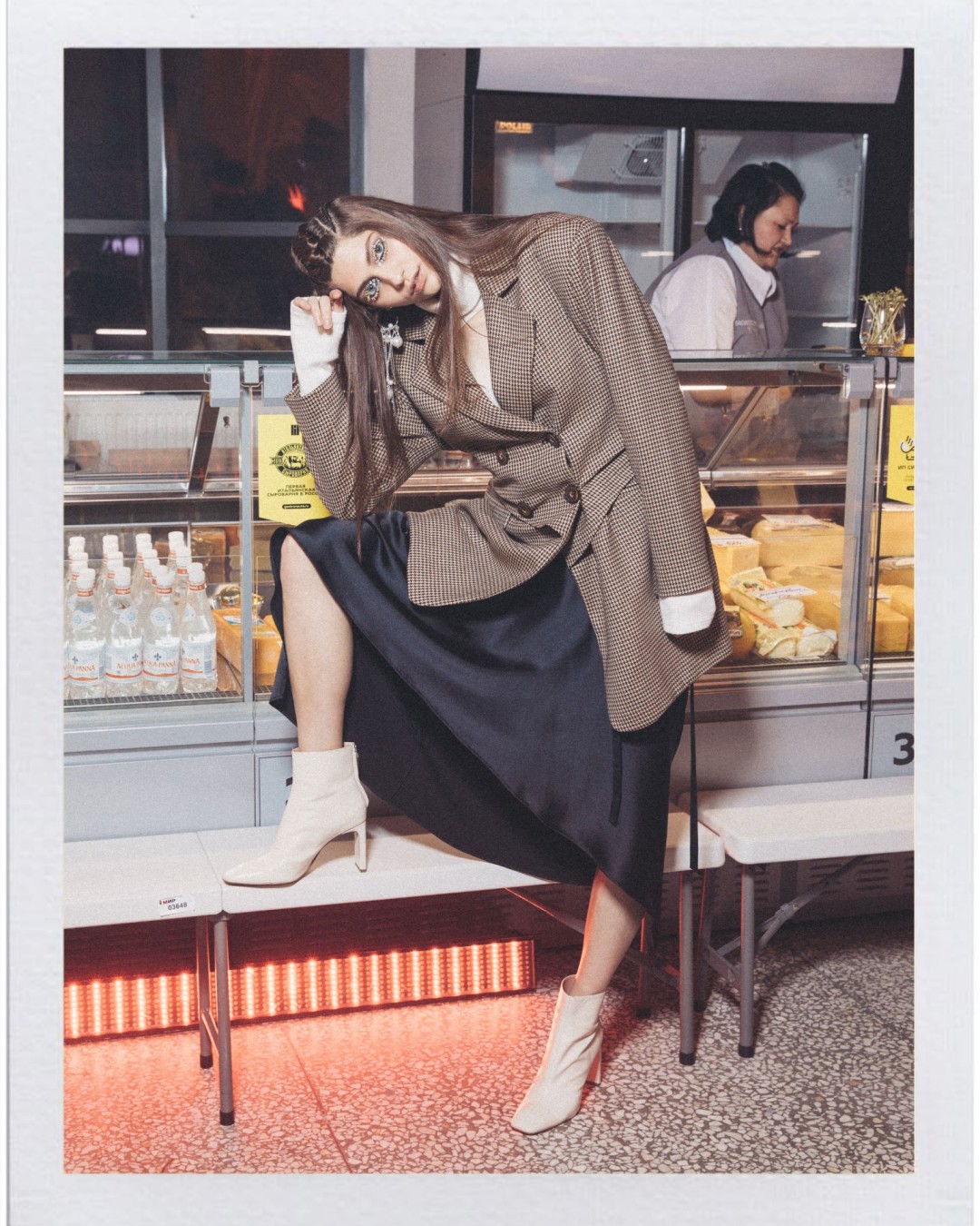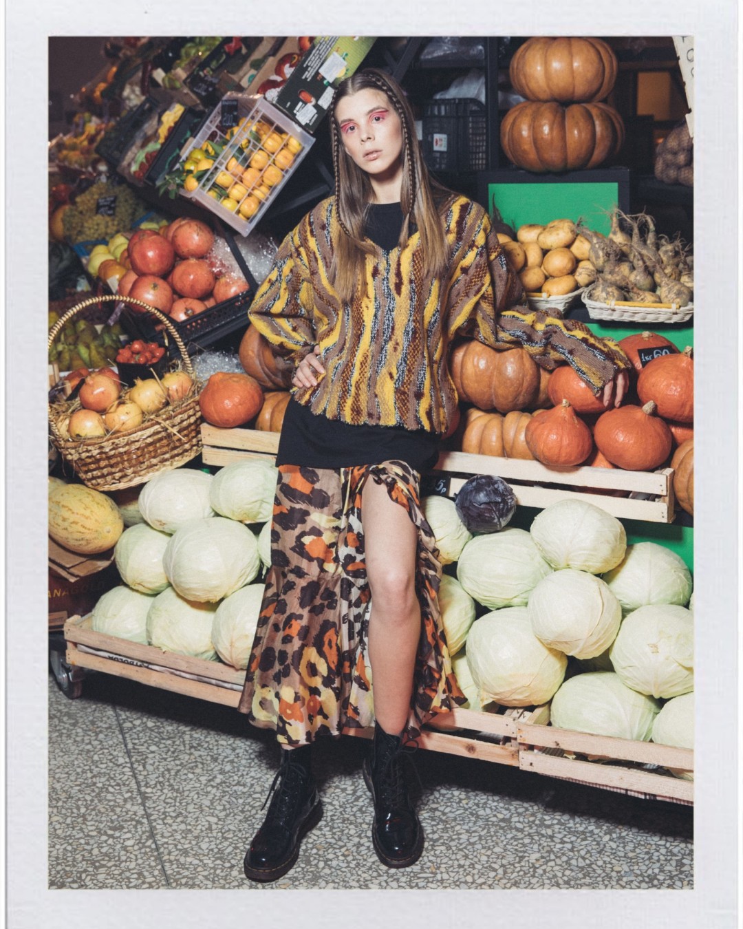 В новом дропе команда Saint-Tokyo продолжила видоизменять классические модели: базовые пиджаки «ломались» поясами и затяжками, юбки-трапеции были сделаны из лаковой кожи, а свитшоты с голыми плечами и объемными рукавами — отшиты по лекалам легких блуз. Некоторые вещи получили принты «экстраверт» и «интроверт», рассказывая о том, что в век социальных сетей каждому — вне зависимости от типа личности — приходится быть ярким и открытым. Это же подчеркивали и шляпы от марки Cocoshnick, с которыми Saint-Tokyo сотрудничают второй сезон подряд: экстраверта они выделяют из толпы, а интроверта — скрывают от лишних глаз.