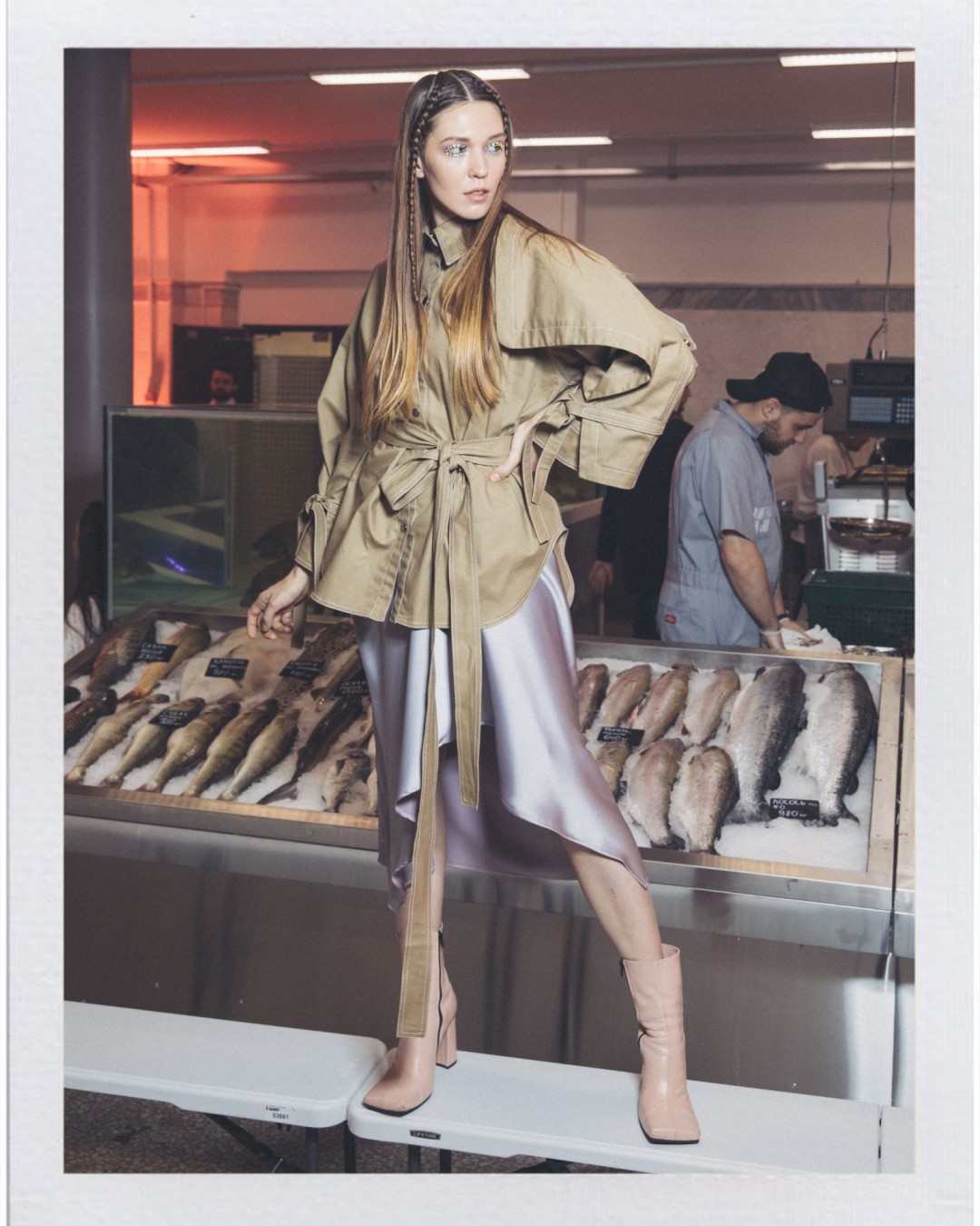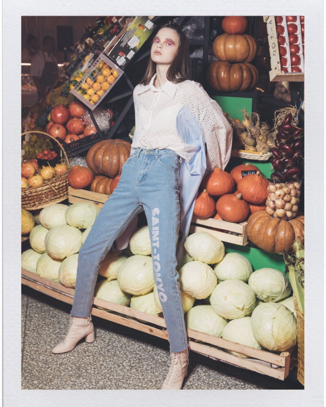 Одним из центральных событий открытия Василеостровского рынка, которое прошло в эти выходные, стал показ второй части осенне-зимней коллекции петербургской марки Saint-Tokyo. Первую дизайнер Юра Питенин показал в лукбуке с участием модели Саши Паники, замешав японские мотивы с европейской классикой, подсмотренной в биографии Флоретт Шело — советника и менеджера по продажам дома Balenciaga, которая проработала с Кристобалем более 30 лет.