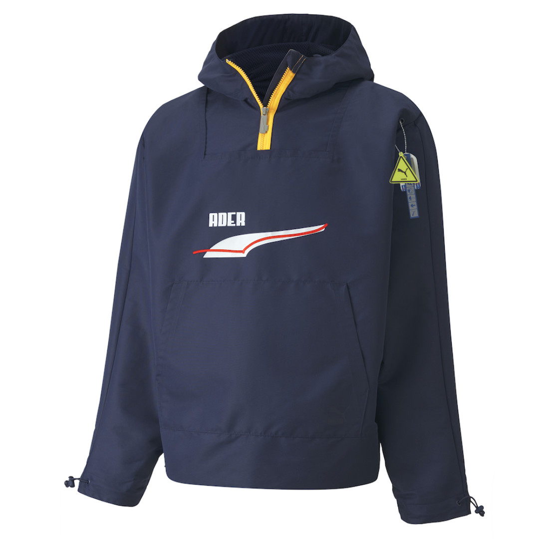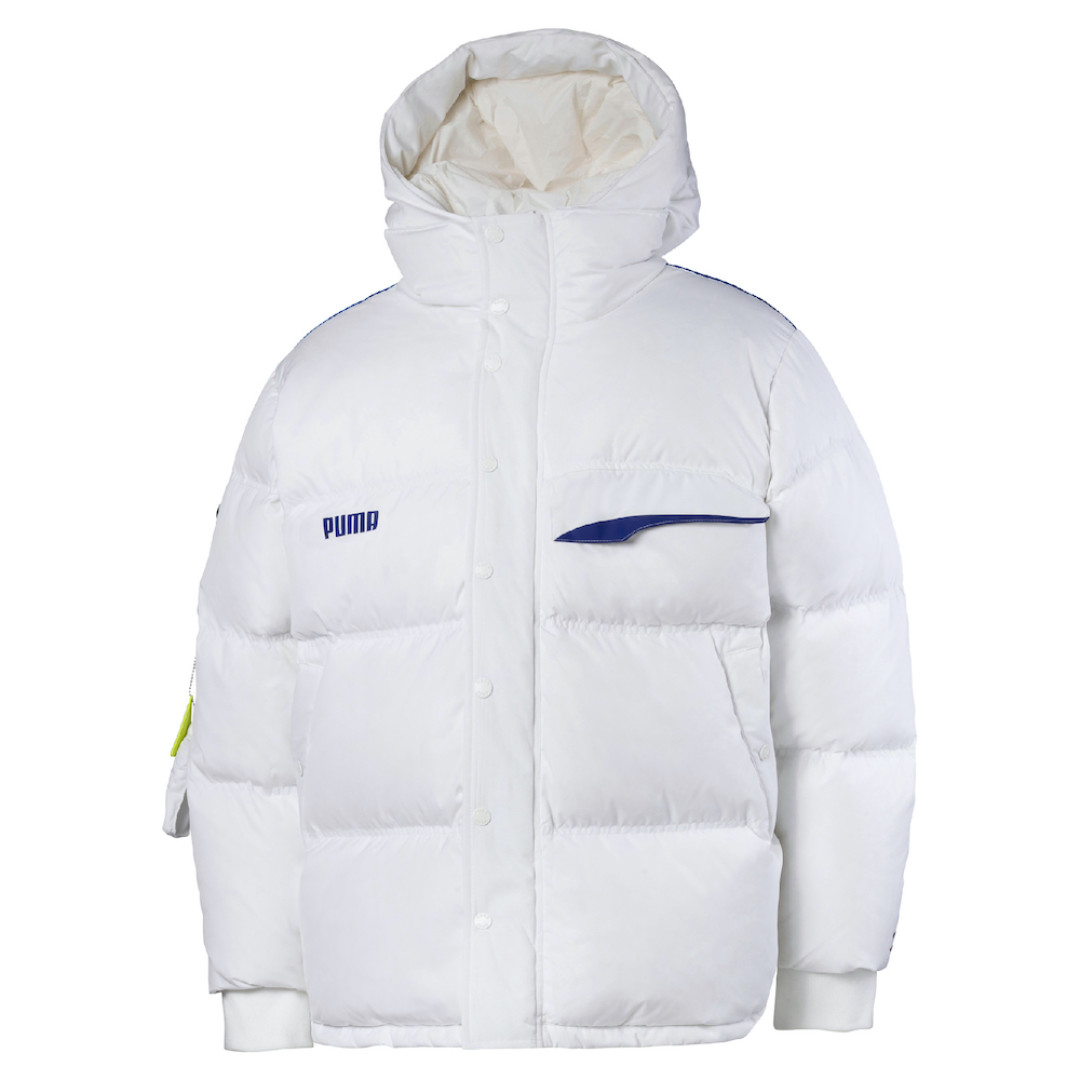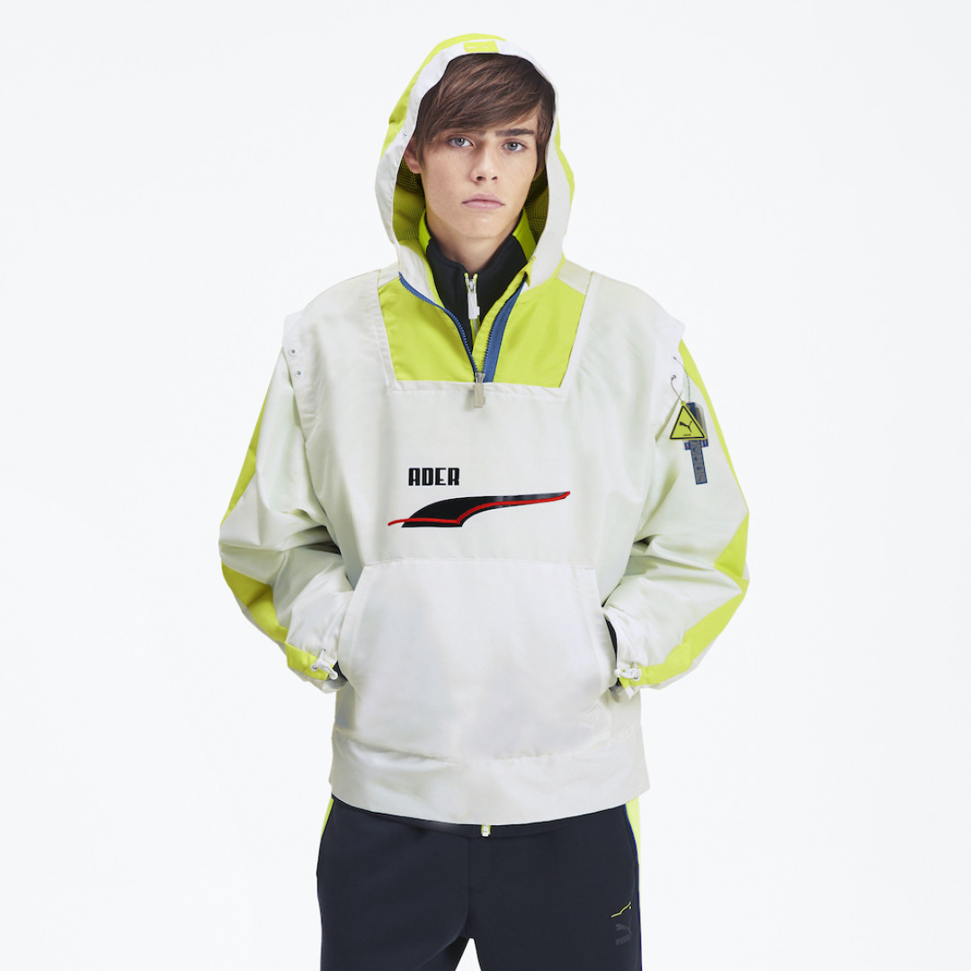 В коллекцию PUMA x ADER ERROR вошла спортивная одежда, которая впечатляет умелым сочетанием выразительных деталей. Например, водолазка коричневого и бежевого цветов, которая приобрела очертания знаменитой олимпийки PUMA T7, а также контрастные элементы на рукавах и разрезы на воротнике и манжетах. Ветровка с капюшоном, неоновыми вставками, силиконовым значком и крупными логотипами брендов — она настолько же стильная, насколько функциональная. Есть предметы и верхней одежды. Пуховик из коллекции в белом цвете — наш выбор. Кажется, это самый модный способ борьбы с холодом в этом сезоне, к тому же белый уже давно нестрашно носить даже зимой. Для того чтобы дополнить свой лук, бренды создали и линию украшений.
