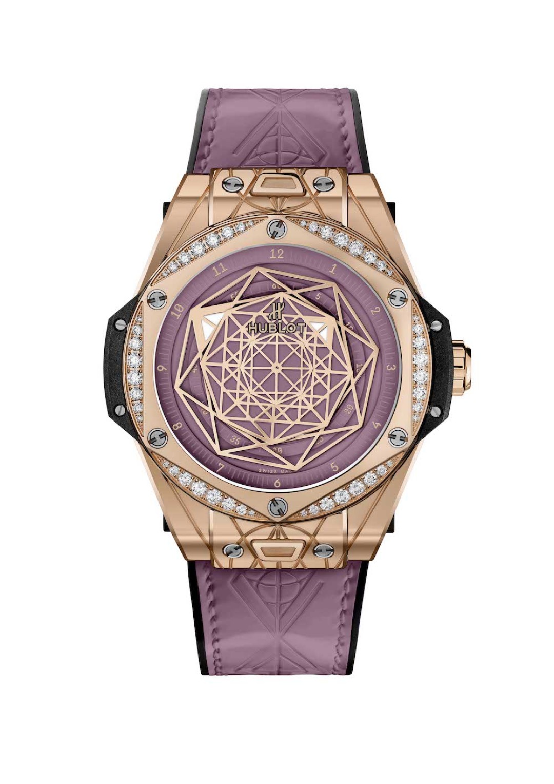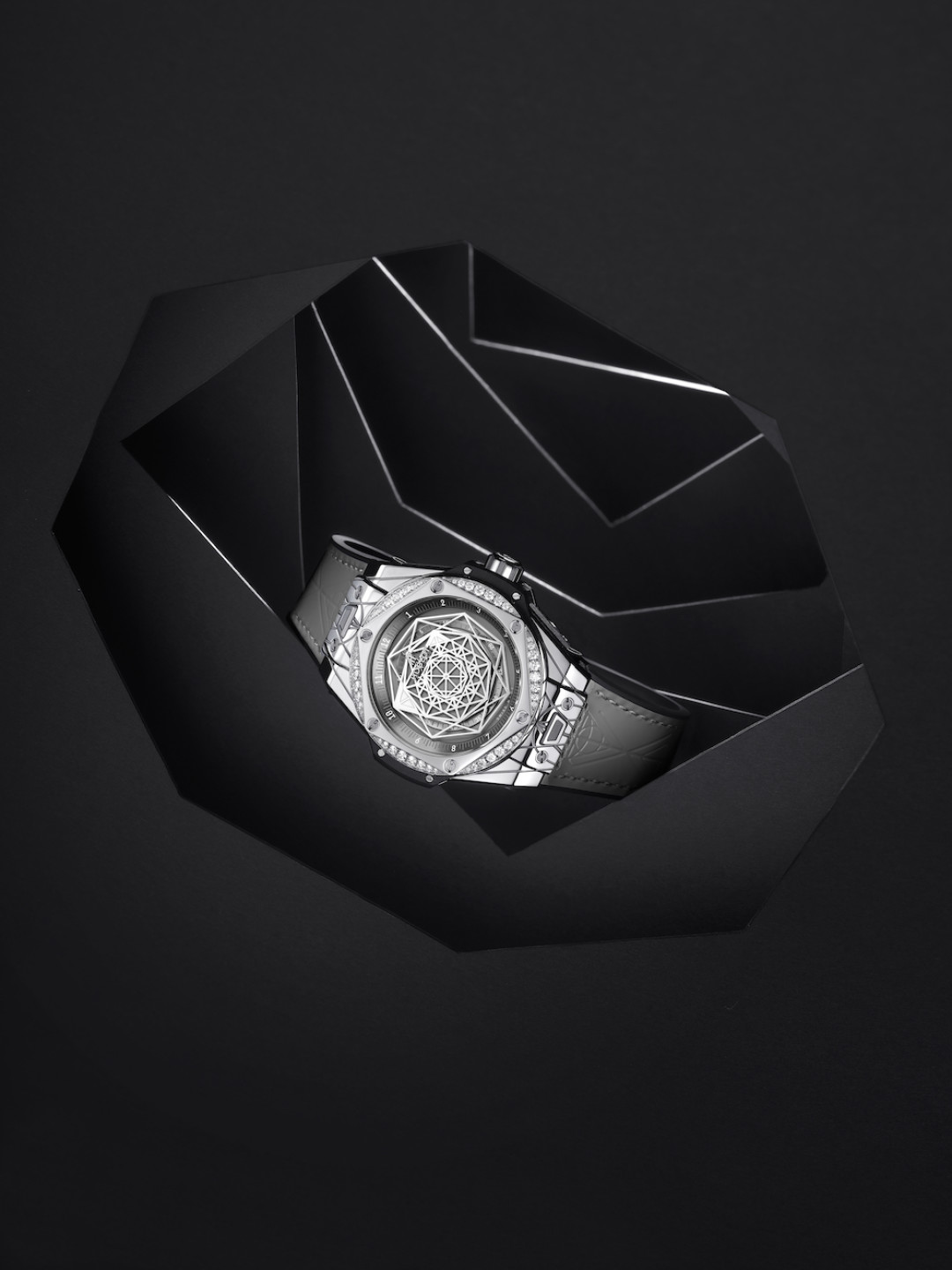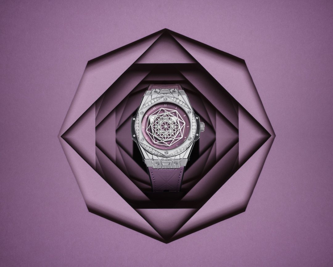 Hublot переосмыслили искусство татуировки и выпустили женскую модель часов Big Bang One Click Sang Bleu, созданные в коллаборации с Максимом Плесчиа-Буши — художником-татуировщиком и основателем студии Sang Bleu («Голубая кровь»). Так на нежно-розовом и сером циферблатах появилась авангардная вариация на тему шестиугольника. Геометричный узор сочетается с ремешком из кожи аналогичных оттенков.