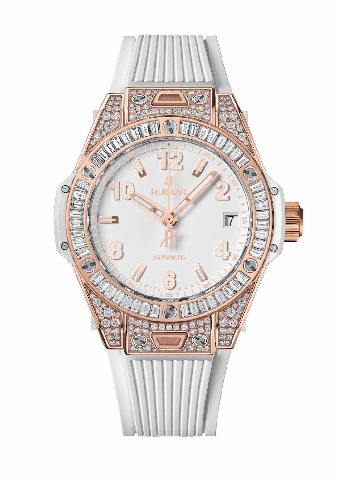 Женская модель Big Bang One Click перенимает дизайнерские коды мужской версии Big Bang Unico, при этом все детали часов прошли полный рестайлинг. Об универсальности часов свидетельствует технология One Click — запатентованная система крепления, которая позволяет быстро и легко менять ремешок нажатием одной кнопки.