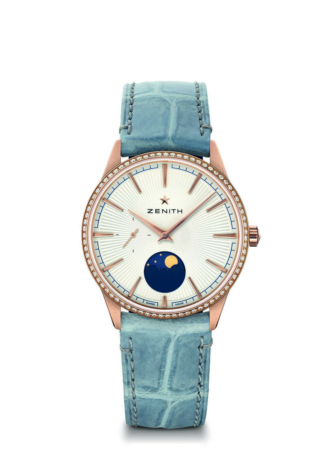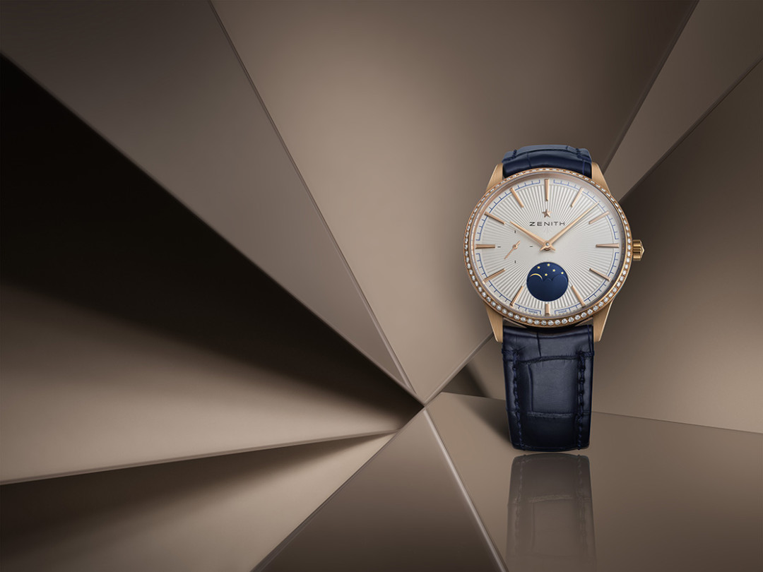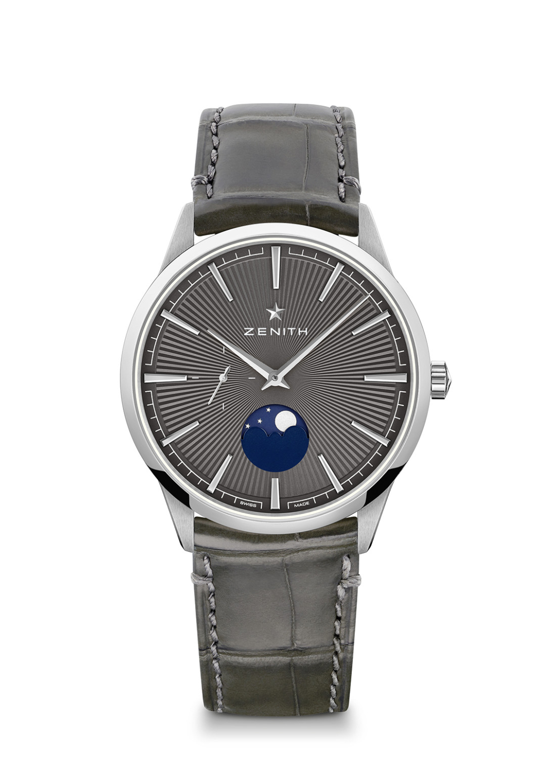 Модель Elite Classic оснащена серебристым циферблатом с круговым узором «Солнечные лучи», образованным тонкими линиями, расходящимися из центра. Такой рисунок создает эффект бликов и теней, а усиливают эту визуальную глубину граненые и полированные конические метки. Над циферблатом «парят» стрелки Dauphine – это одна из самых изысканных форм часовых стрелок, напоминающая о моделях Zenith середины 20 века. Ультратонкий и заслуживающий внимания по своим характеристикам калибр Elite обеспечивает запас хода в 50 часов.