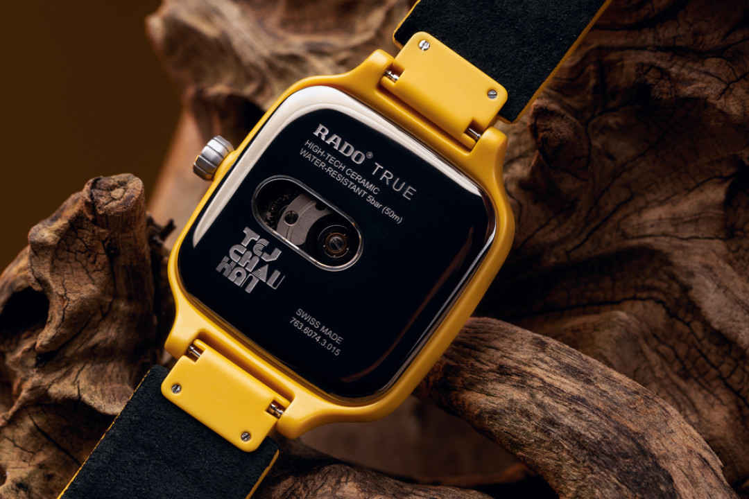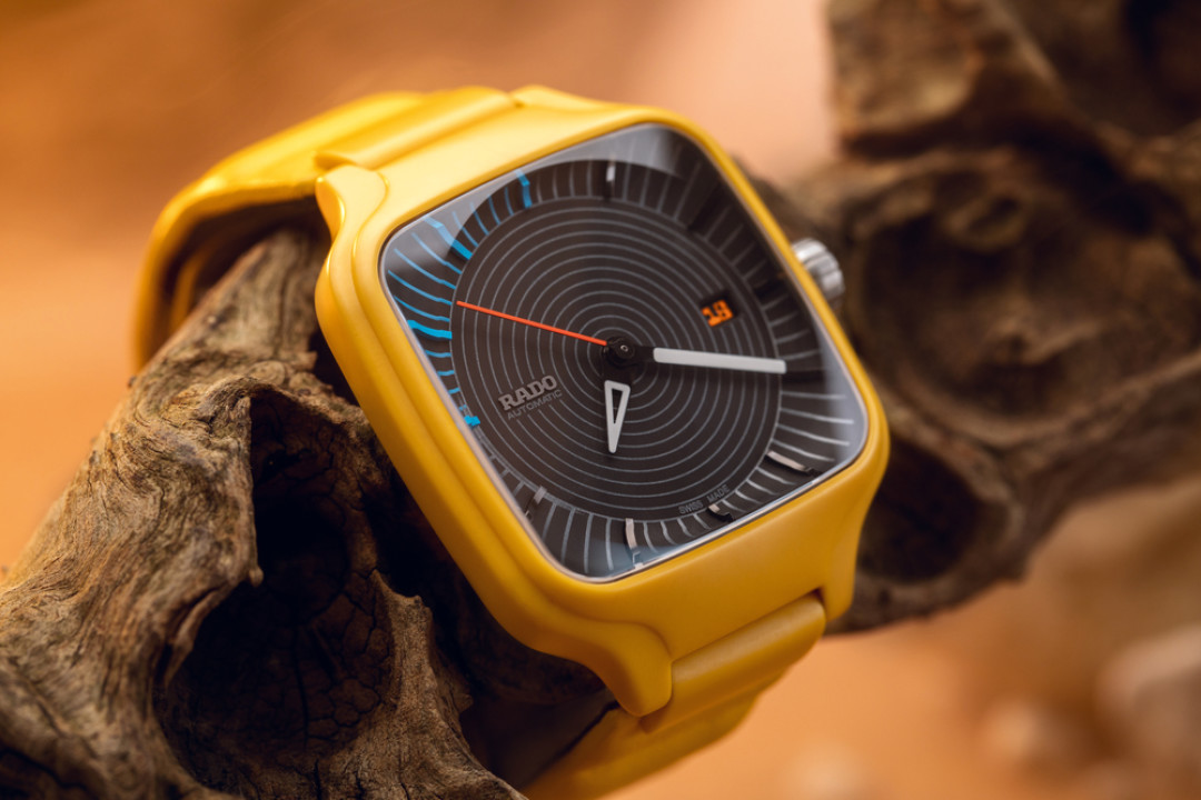 Вдохновением для его сотрудничества с Rado послужили идеи поп-культуры, начиная фильмами и печатными изданииями и заканчивая теорией цвета. Результатом стали обтекаемые формы, выполненные из монолитной высокотехнологичной керамики. Корпус желтого цвета с матовой текстурой сочетается с темно-серой задней крышкой корпуса из полированной нержавеющей стали с PVD покрытием с сапфировым стеклом и особой гравировкой. Дополнением послужил браслет, изготовленный из кожаных деталей в форме подушечек, скрепленных с помощью деталей из высокотехнологичной керамики. Завершает композицию застежка из нержавеющей стали с покрытием PVD темно-серого цвета.