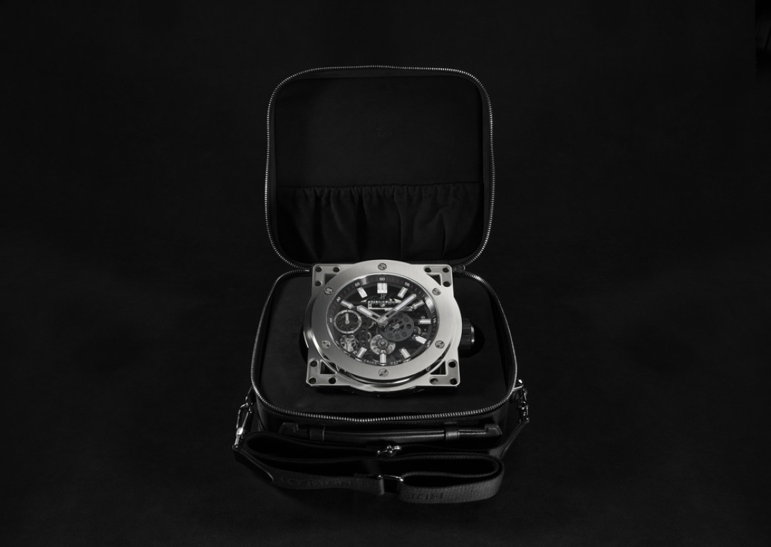 Решение этой инженерной задачи оказалось возможным благодаря коллаборации со швейцарской мануфактурой L’Epée – одним из лидеров в производстве настольных часов. В этом союзе воплотилось «Искусство синтеза», которым славится бренд Hublot: совместный опыт дизайнеров, конструкторов и мастеров часового дела позволил получить впечатляющий результат.