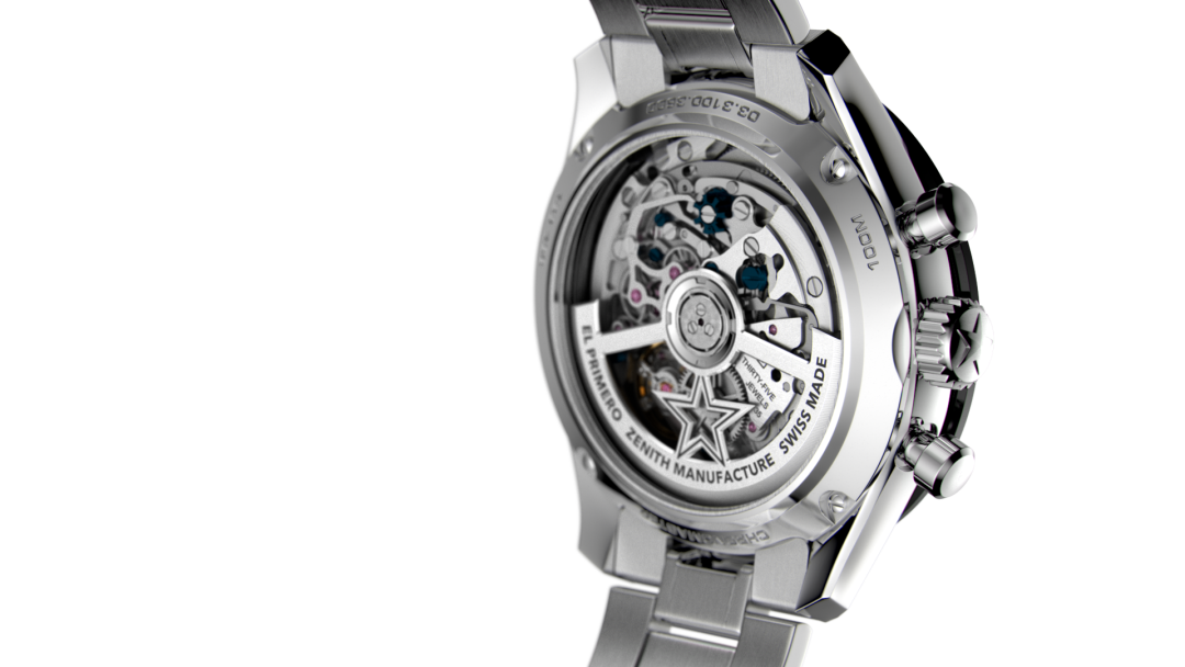 Постоянно меняя будущее часового производства, компания Zenith добилась значительного роста производительности механизма, разработав калибр El Primero, преимущества которого заслужили высокую оценку пользователей. Новый калибр El Primero 3600 предлагает более мощную производительность и точность, чем его предшественник, и дополнен легко читаемым дисплеем с выгравированной на черном керамическом безеле шкалой, облегчающей восприятие показаний, демонстрируемых с точностью до 1/10 секунды: это единственные часы, обладающие такой эффективностью.