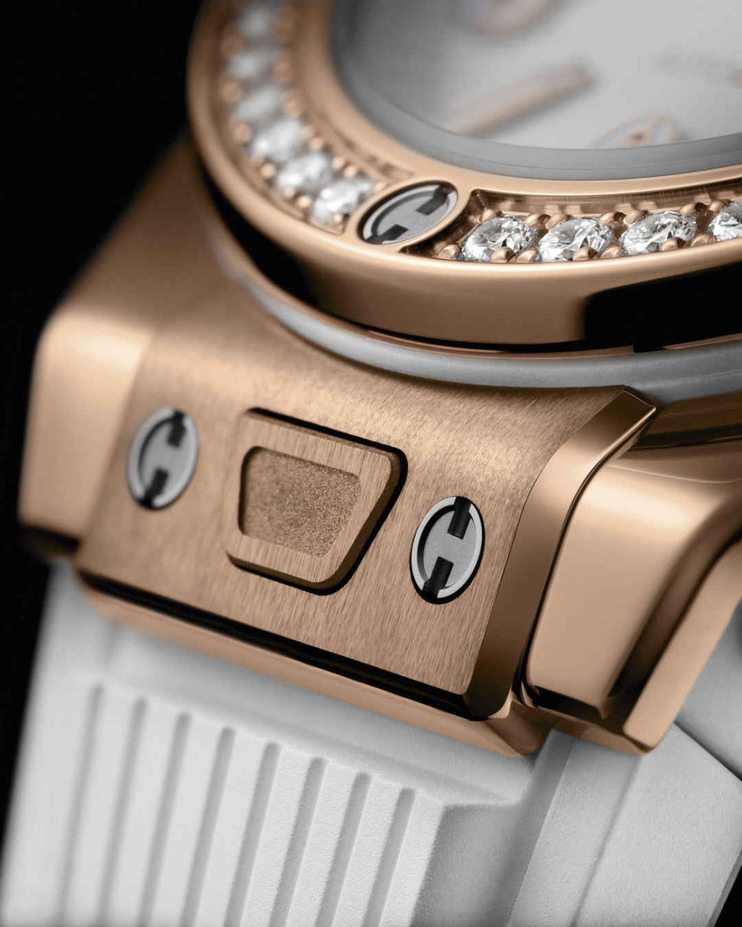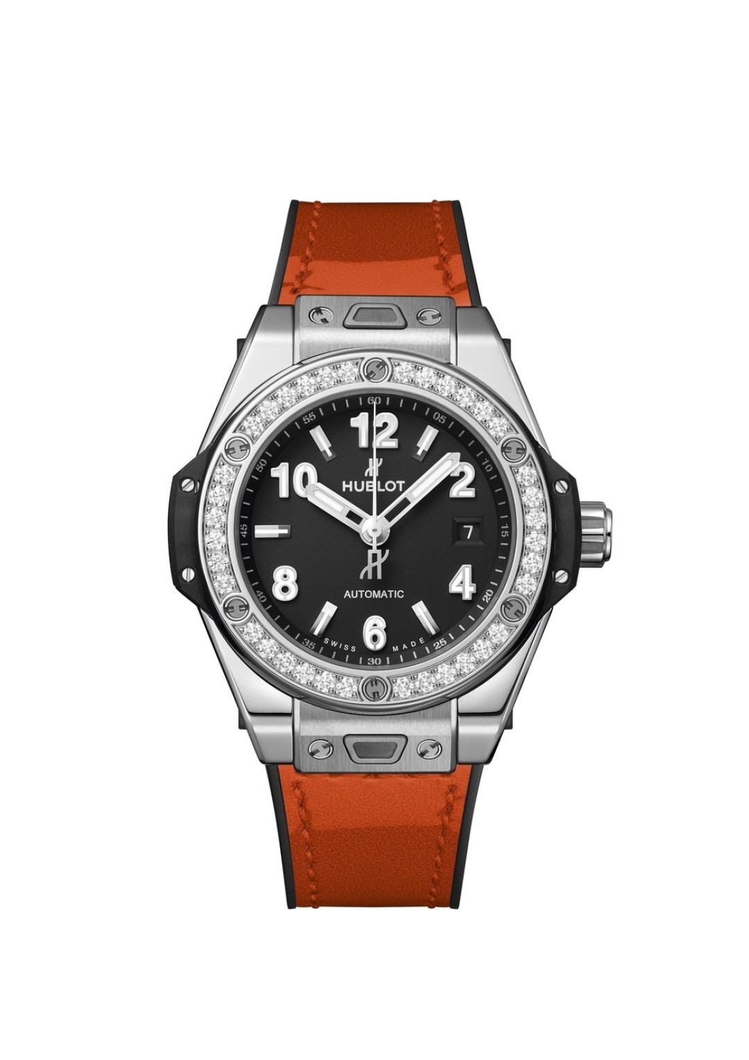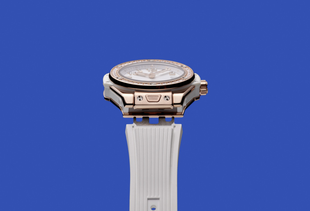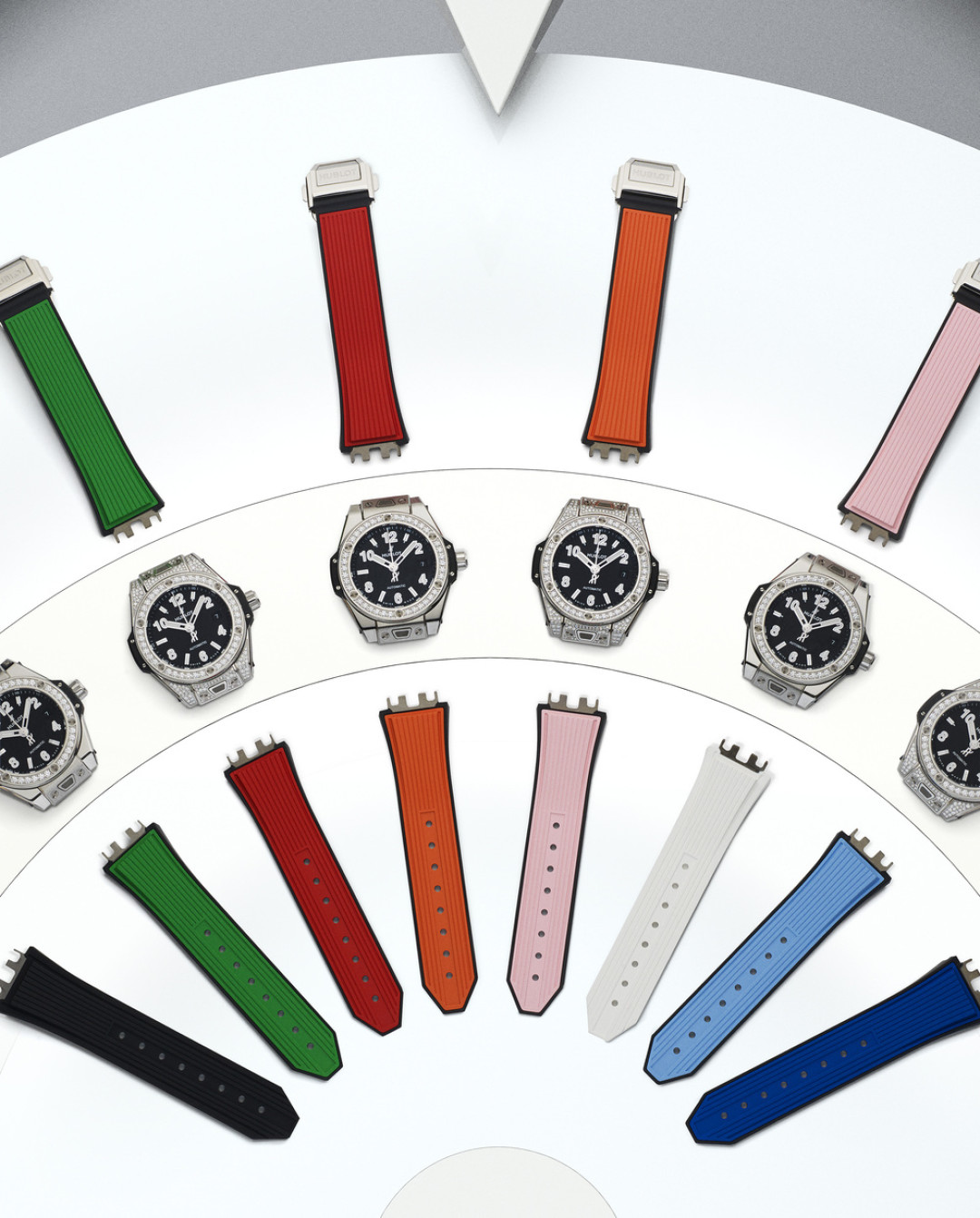 В благородном черном или ослепительно белом, в морском, в розовом или небесно-голубом, в насыщенном красном, зеленом или оранжевом цвете — в любой модели Big Bang One Click 33 мм каучуковые ремешки составляют отличную компанию бриллиантам, которые озаряют безель своим сиянием. Кожаная версия ремешков в малиновом, терракотово-оранжевом или цвете электрик помогает создавать уникальные образы.