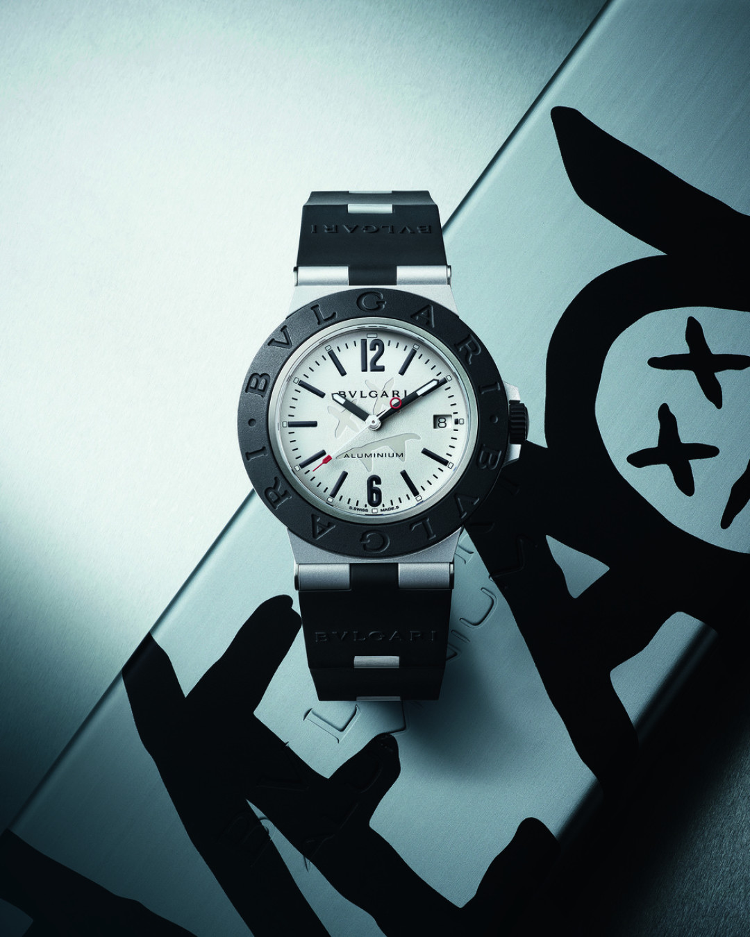 Специальная серия часов с алюминиевым корпусом и каучуковым ободком Bvlgari Aluminium Steve Aoki посвящена известному во всем мире диджею и украшена его эмблемой и подписью.