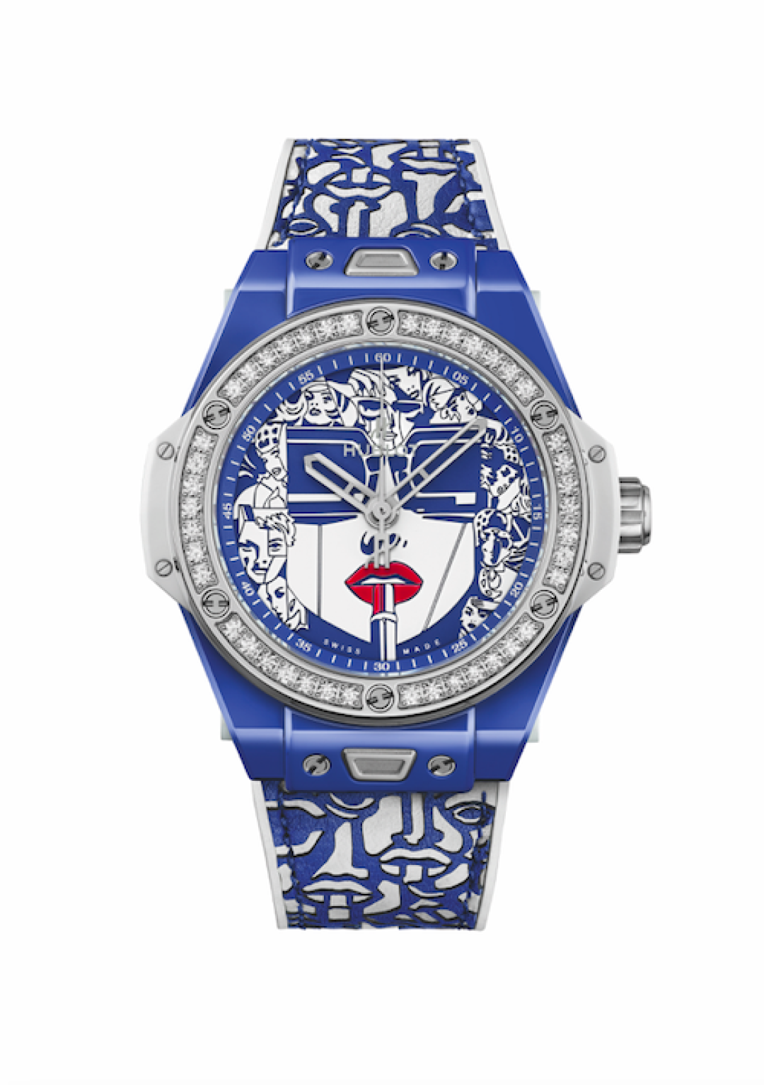 Циферблат Hublot Big Bang One Click Marc Ferrero Ceramic Blue стал уникальным выставочным залом для картины Lipstick — одной из самых известных работ французского графика Марка Ферреро. Посмотреть на этот объект искусства в 39-миллиметровой «раме» из стали и синей керамики можно только в российских бутиках бренда. Часы вышли сверхограниченной серией всего в 25 экземпляров. Коллекционеры открывают охоту!