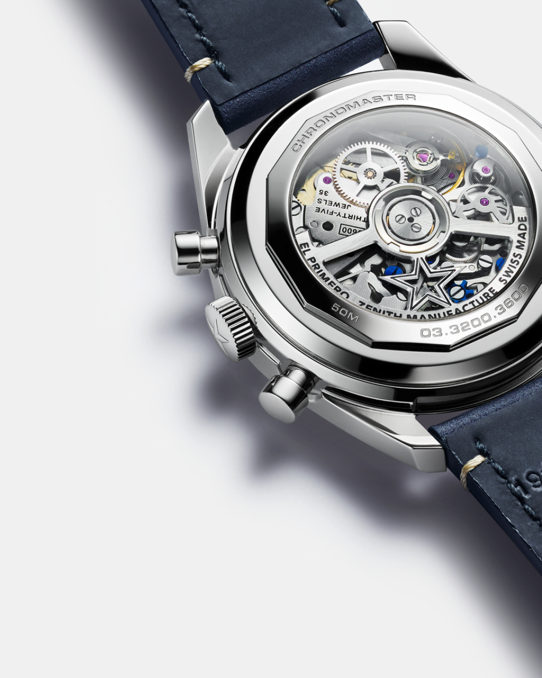 В результате 50 лет постепенного совершенствования и истинного владения автоматическим высокочастотным механизмом хронографа, часы Chronomaster Original оснащены последней версией калибра El Primero, получившей название El Primero 3600. Благодаря высокой частоте 5 Гц (36 000 пк/ч), механизм способен обеспечивать индикацию времени с точностью до 1/10 секунды. Кроме того, часы обладают увеличенным 60-часовым запасом хода. Сквозь сапфировое стекло задней крышки часов отчетливо просматривается новая архитектура механизма с более гладким и открытым дизайном: синее колонное колесо и открытый ротор, украшенный пятиконечной звездой Zenith.