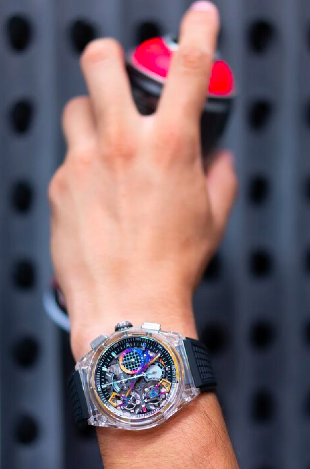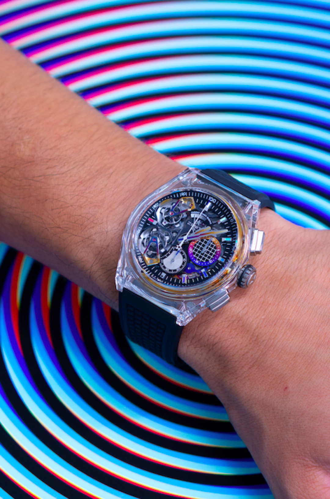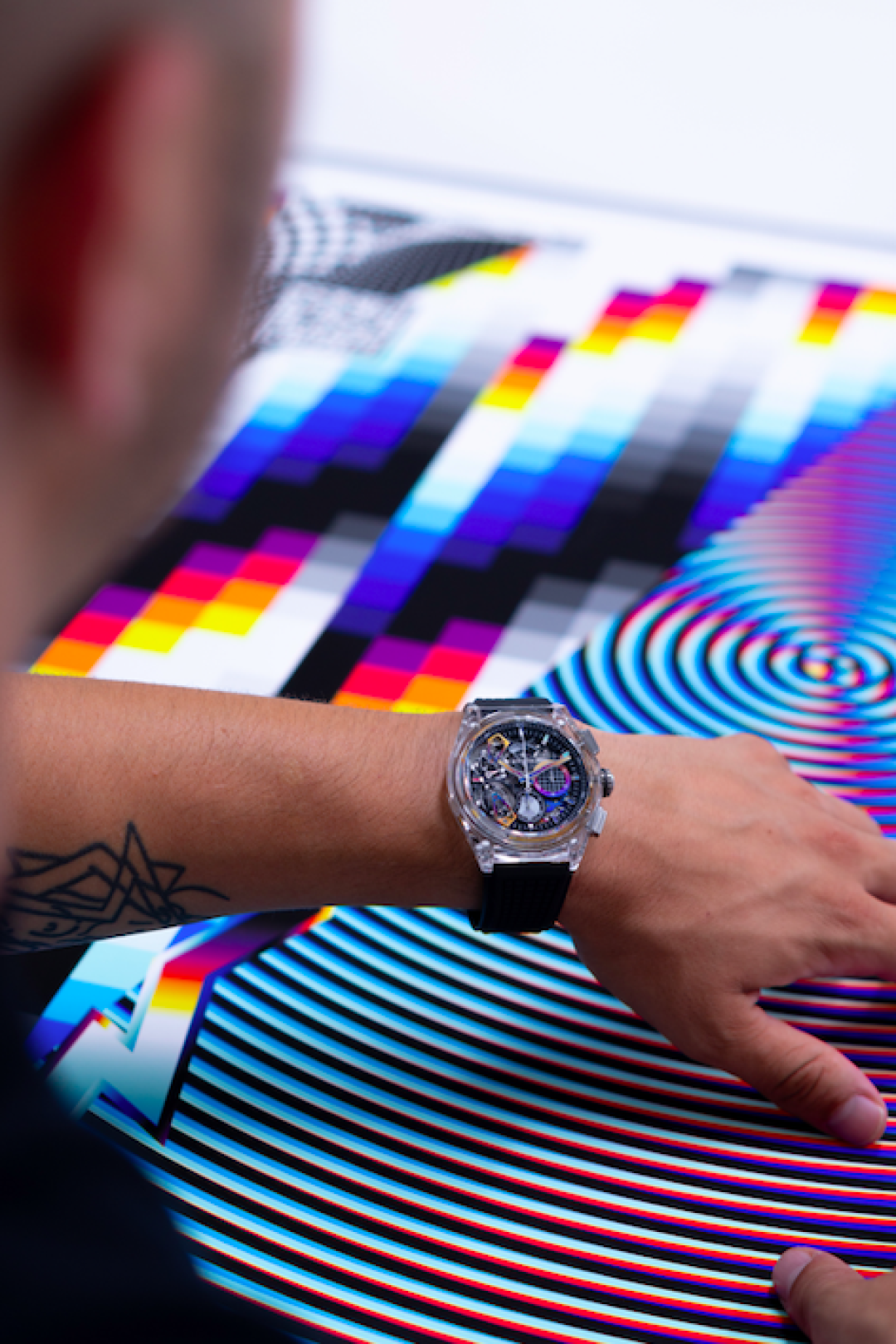 Швейцарский часовой бренд и оптический художник Фелипе Пантоне создали уникальные часы — DEFY 21 Double Tourbillon. При работе над ними впервые было использовано инновационное трехмерное PVD-покрытие — обработка частицами кремния механизма хронографа и его обратной стороны, которая гарантирует идеальные цветовые переходы. Модель представлена в единственном экземпляре.