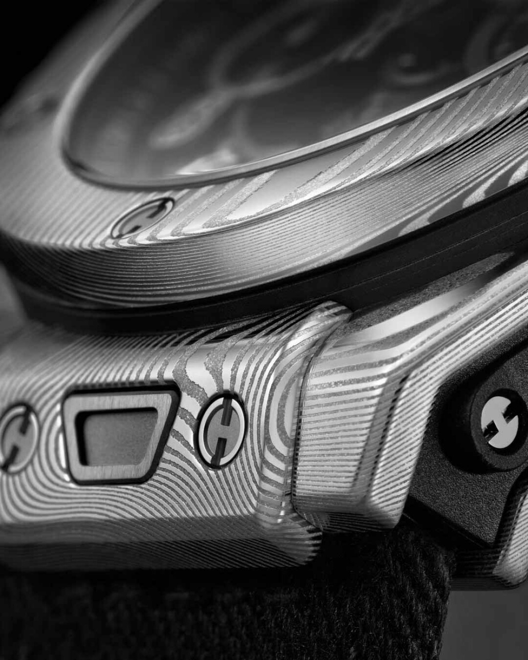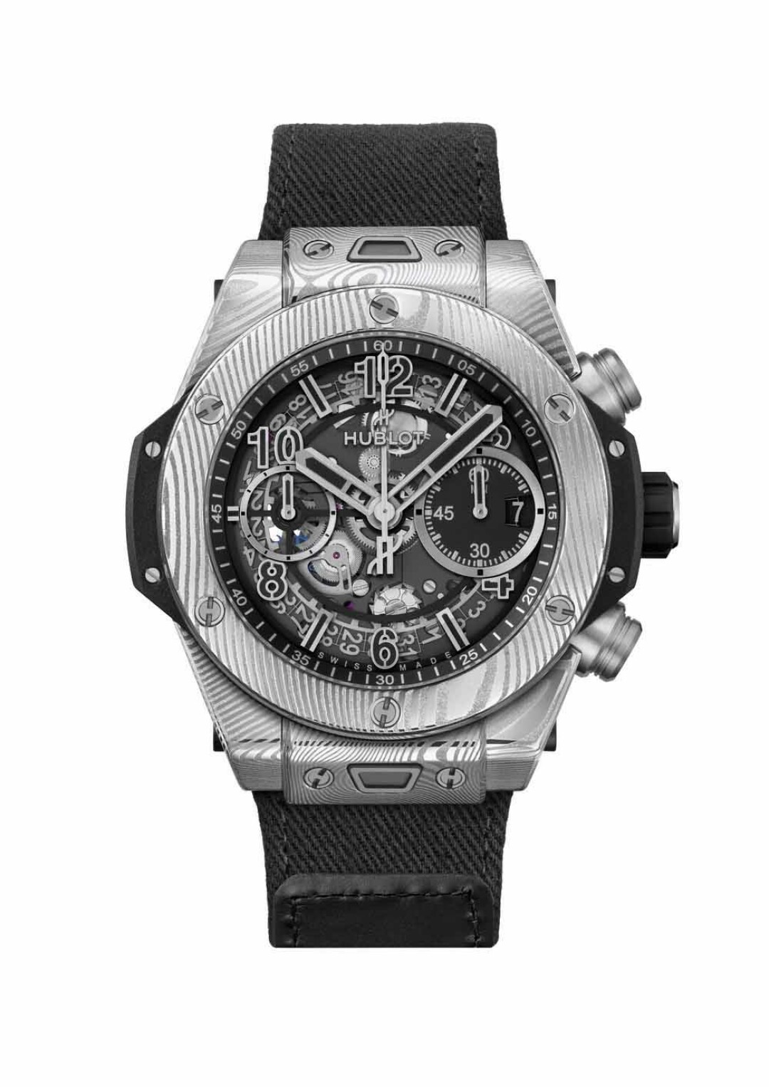 Главный инструмент любого шеф-повара — его нож, которым он умело орудует на кухне, а одни из лучших производят из дамасской стали, с характерными «разводами» и уникальным рисунком по металлу, сталь, помимо своей красоты, отличается еще и невероятной прочностью. Именно этот материал был включен в состав модели Big Bang Unico Gourmet, выпущенной ограниченным тиражом в 200 экземпляров. Браслет тоже поддерживает гастрономический дух — он выполнен из той же ткани, из которой часто делают кухонные фартуки. Ноу-хау этих часов — облегченная застежка-липучка, полезное и практичное изобретение не только для кухни.