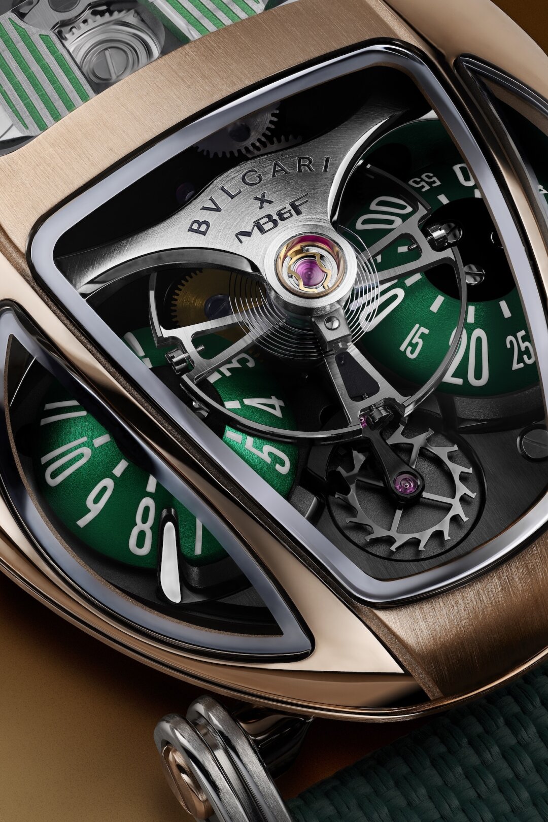 Нынешняя коллаборация между MB&F и BVLGARI является вторым совместным проектом. Первым были часы LM Flying T Allegra, выпущенные четыре года назад и ставшие первыми женскими часами от MB&F. Новинка-2025 не просто коллаборация, а сложное инженерно-дизайнерское произведение.
