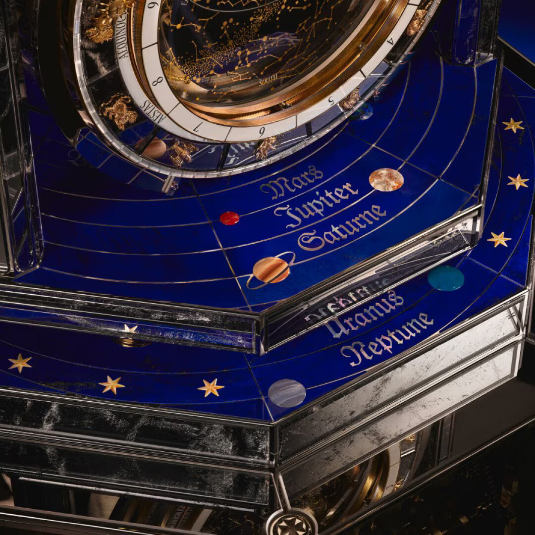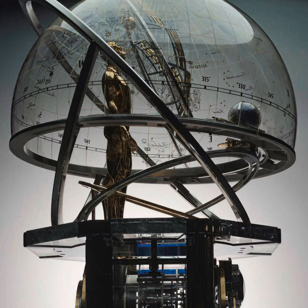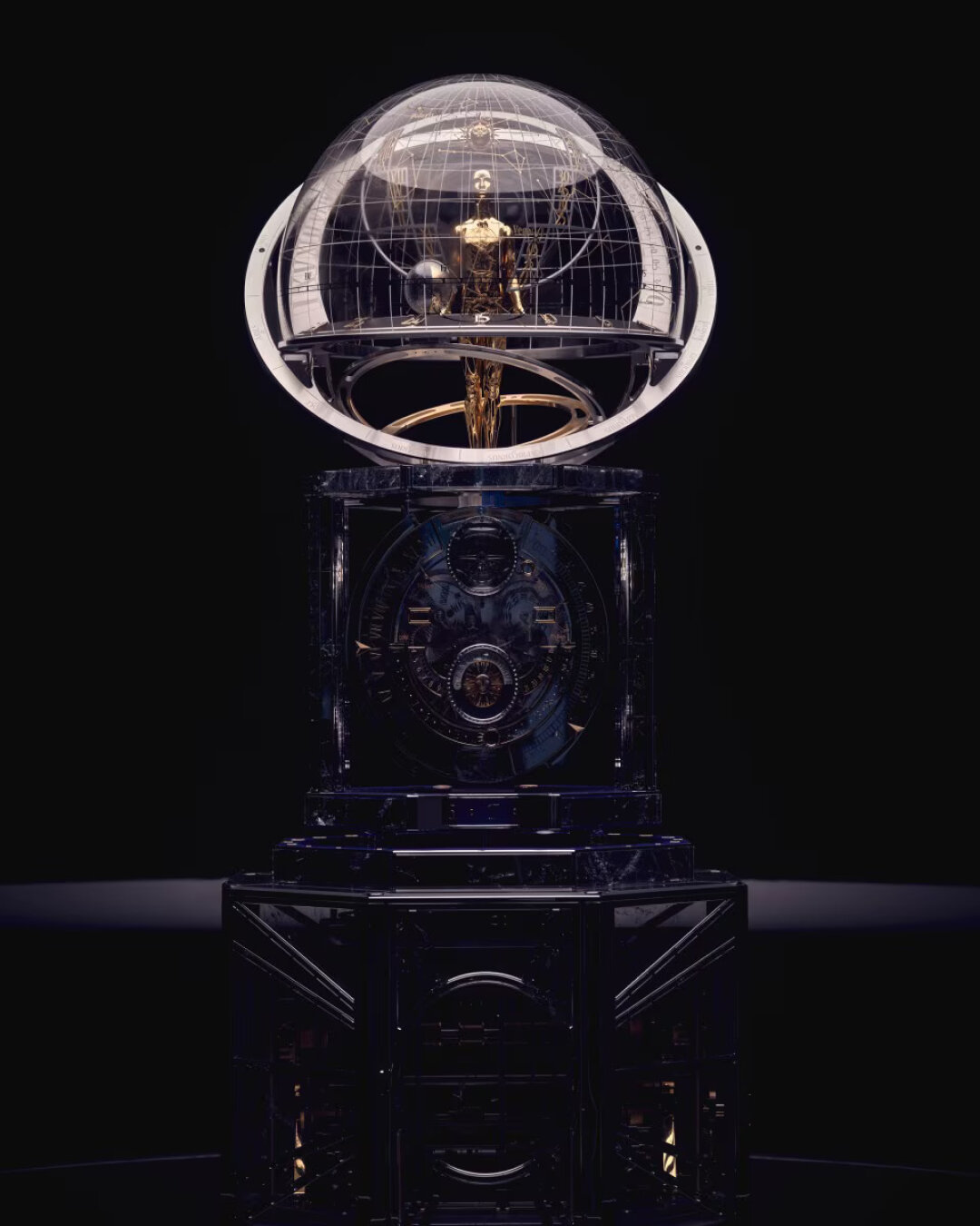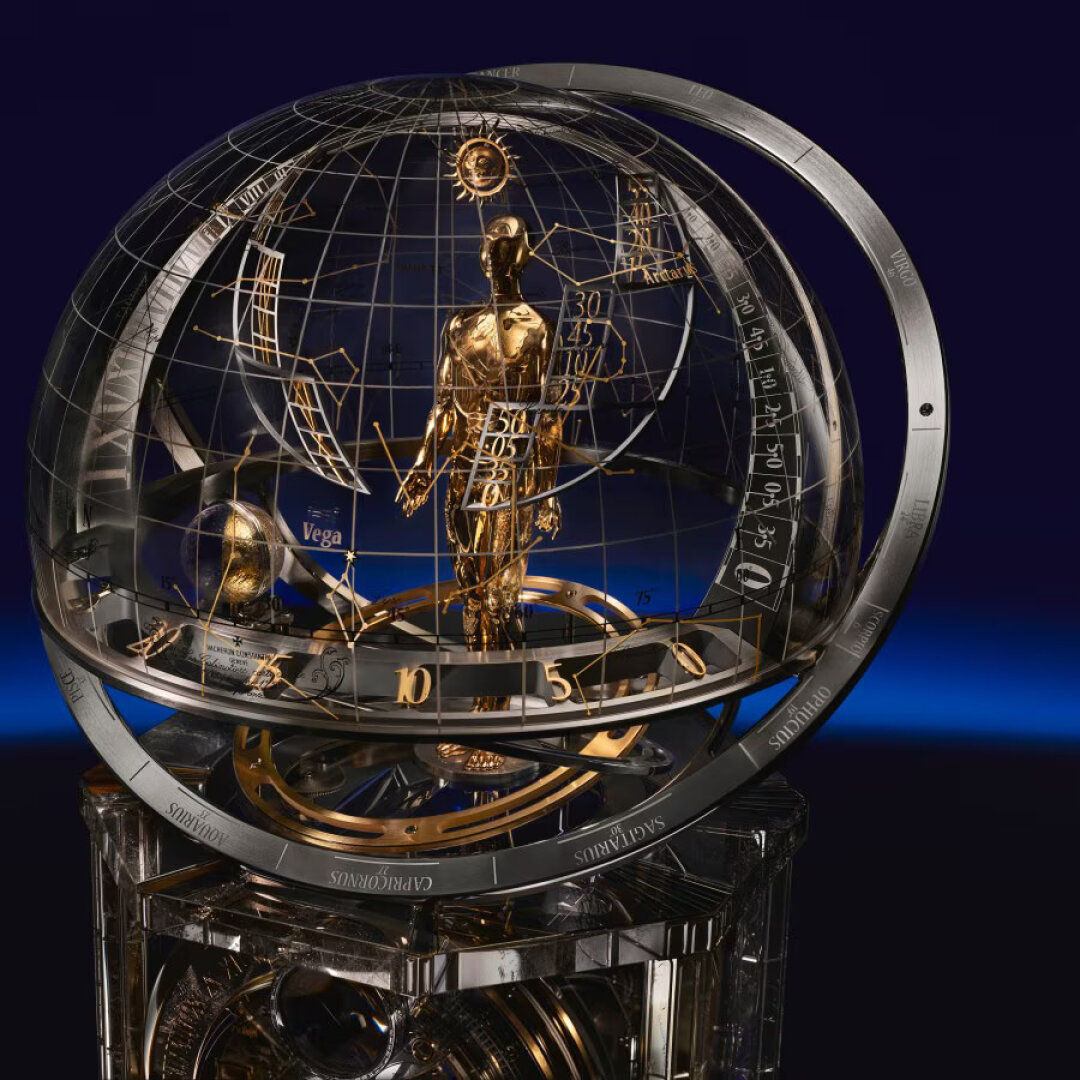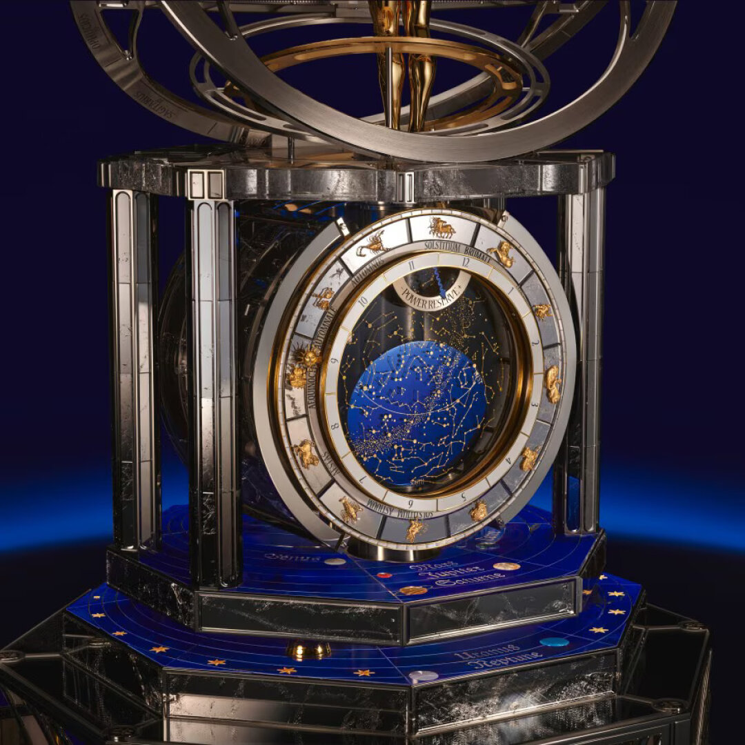 Их центральной частью является астроном–автоматон. Такой же, как в старинных механических куклах, только теперь он встроен внутрь. Идея современного автоматона может показаться парадоксальной, но именно в этом и сила проекта. Традиционно автоматоны существовали отдельно — как самостоятельные механические шедевры, или дополнения, украшавшие часы. По новой концепции автоматон стал частью самого часового механизма, он органично интегрирован в хронометрическую систему. Фигура приводится в движение отдельным заводным барабаном и выполняет 144 различных жеста, отображая на глобусе месяцы, времена года, дни равноденствия и знаки зодиака. Семь патентов на часы, восемь — на автоматон!