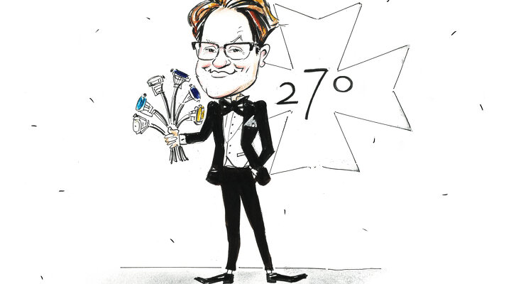 Павел Кейв. Портрет — подарок художника, запечатлевшего автора статьи в Лондоне на юбилейном мероприятии Vacheron Constantin