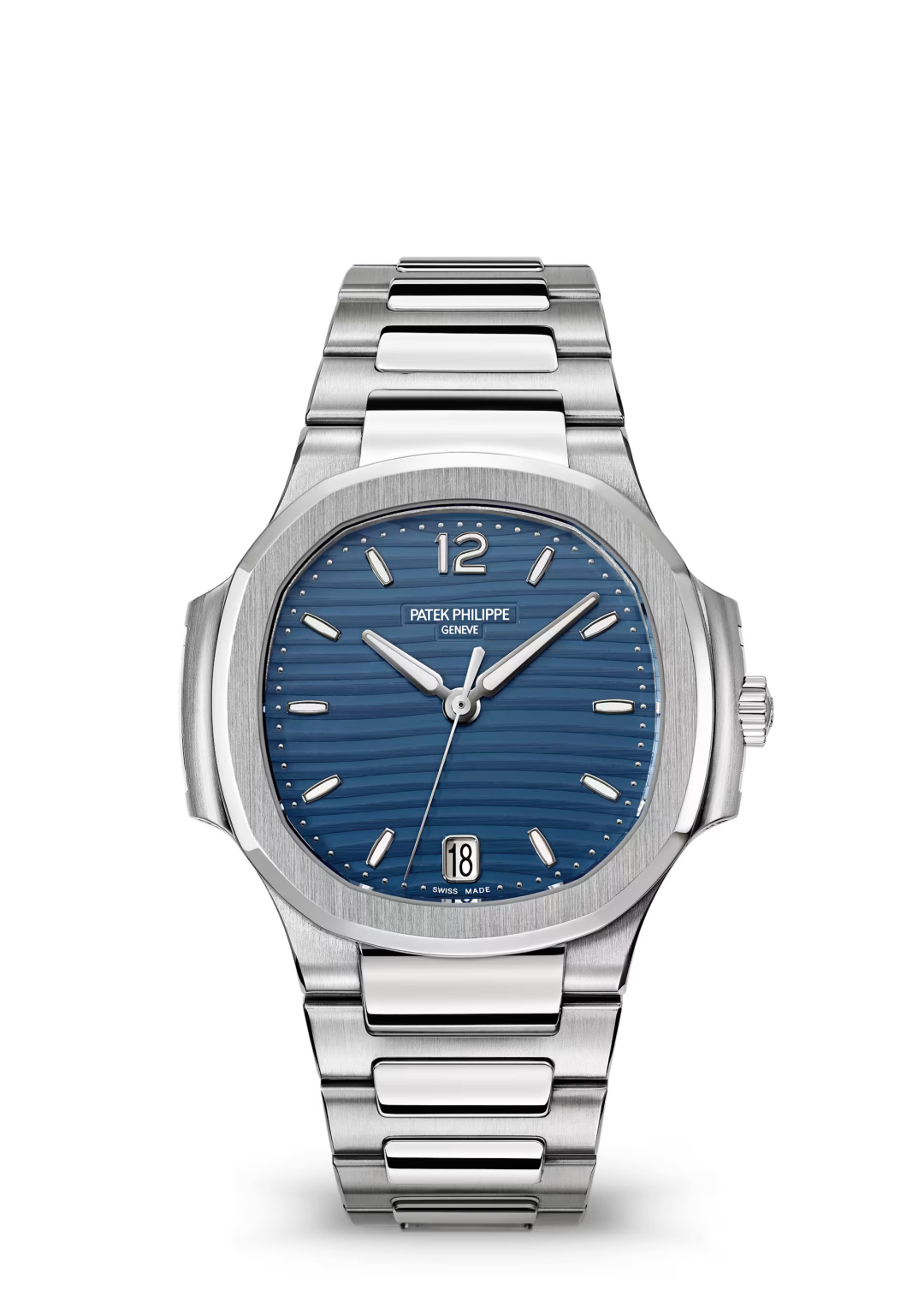 Модель известна своим синим опаловым циферблатом с горизонтальным рельефом — визуальной отсылкой к морской теме, заложенной заложенной «Пикассо часового искусства» легендарным дизайнером Джеральдом Джентой еще в оригинальном Nautilus 1970-х. Именно этот циферблат стал одной из самых узнаваемых черт женской версии: он меняется в зависимости от освещения, оставаясь сдержанным и благородным. Накладные метки и стрелки из белого золота с люминесцентным покрытием добавляют функциональности, не нарушая общей чистоты дизайна.