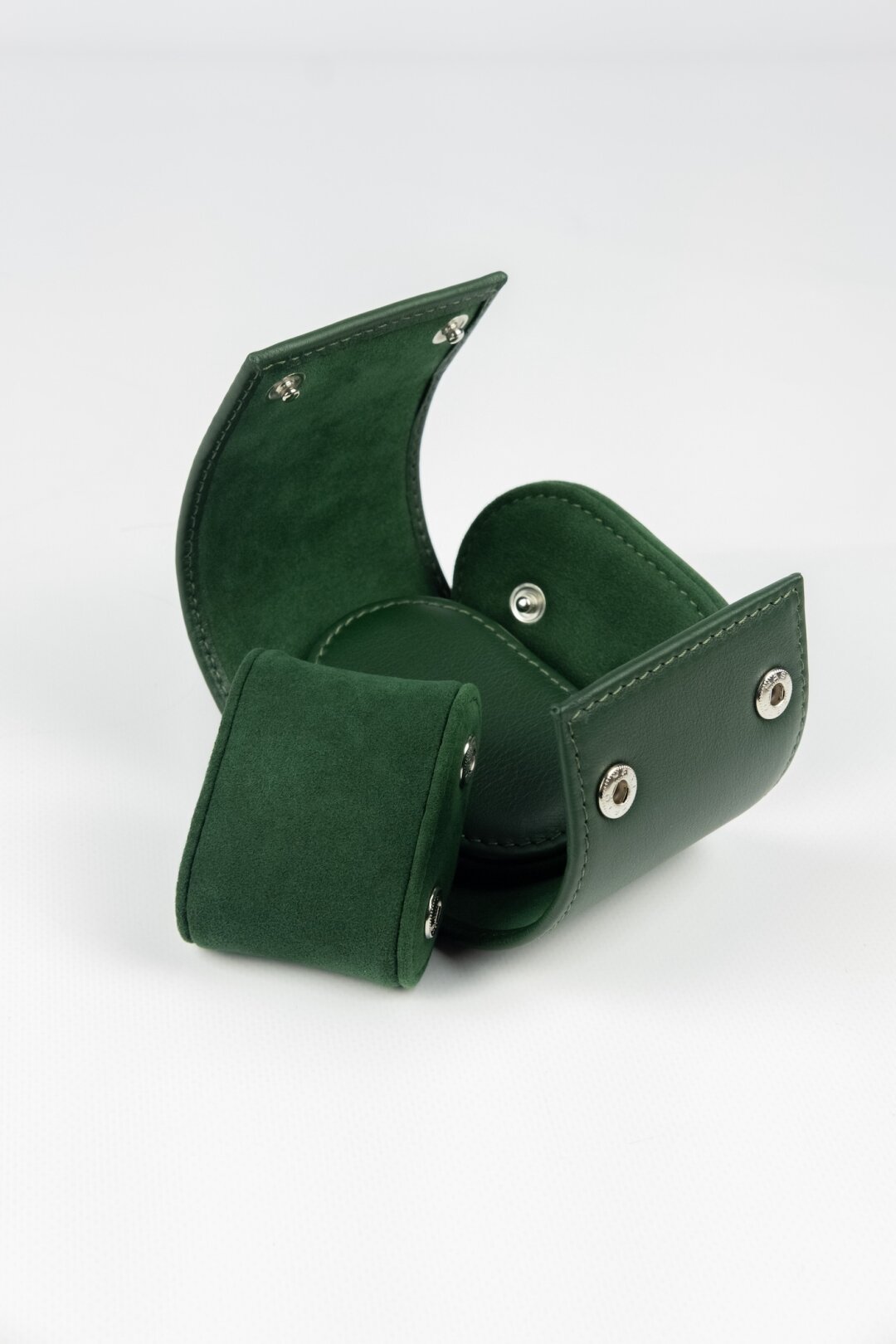 В футляр можно поместить 4 пары часов. Они надеваются на длинную мягкую подушку, а между ними устанавливаются кожаные разделители, которые предотвращают контакт корпусов. Сам футляр имеет жесткий каркас, поэтому часы защищены от ударов и давления во время поездки.