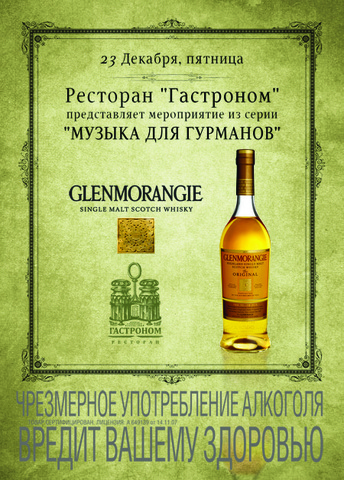23 декабря в ресторане "Гастроном" пройдет вечернее мероприятие из серии "Музыка для гурманов". Музыкальное оформление вечера - совместное выступление Dj KSKY (radio Monte-Carlo, Deep Connection) и известного джазового гитариста Алексея Дегусарова. Welcome Drinks от Glenmorangie. Фуршет от ресторана "Гастроном".
