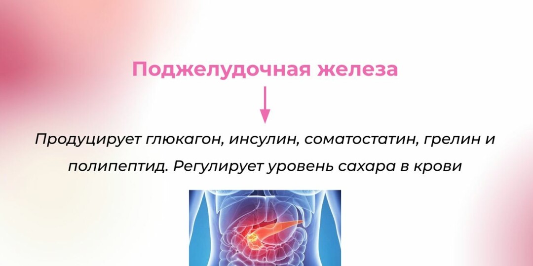 Поджелудочная железа (располагается в брюшной полости). Она содержит большое количество клеток, которые вырабатывают гормоны: альфа и бета-клетки, дельта-клетки. Этот орган отвечает за углеводный обмен, вырабатывает глюкагон (антагонист инсулина), соматостатин, который влияет на развитие, рост и формирование соединительной ткани, костей, мышц, сухожилий и другие гормоны.
