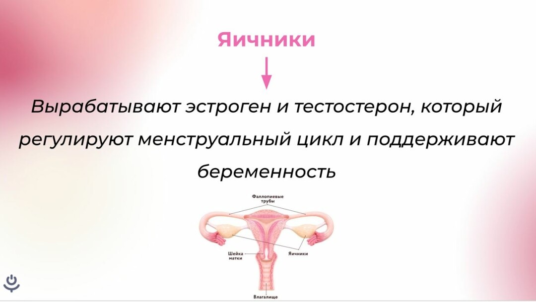 Железа внутренней секреции (в малом тазу у женщин), отвечающая за половую принадлежность — яичники. В них вырабатываются эстрогены и прогестерон, регулирующие фазы менструального цикла. Функция яичников со временем угасает, женщина входит в период менопаузы, возникает дефицит эстрогенов, провоцирующий возрастные заболевания (например, остеопороз и сердечно-сосудистые проблемы).