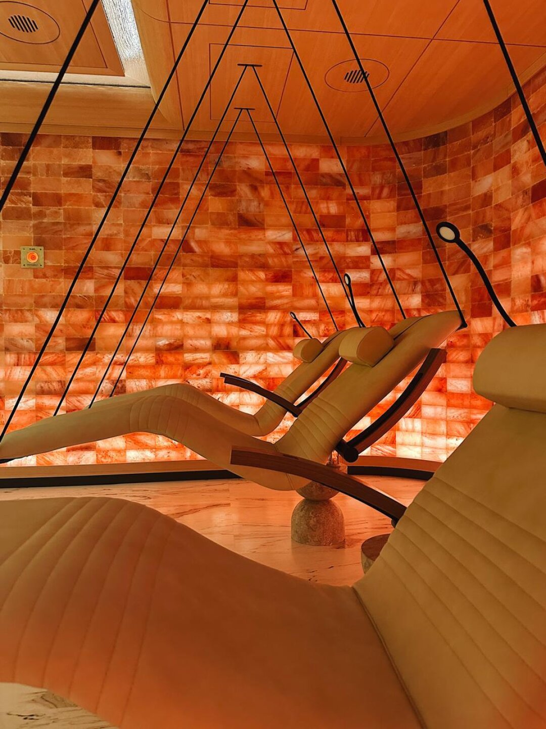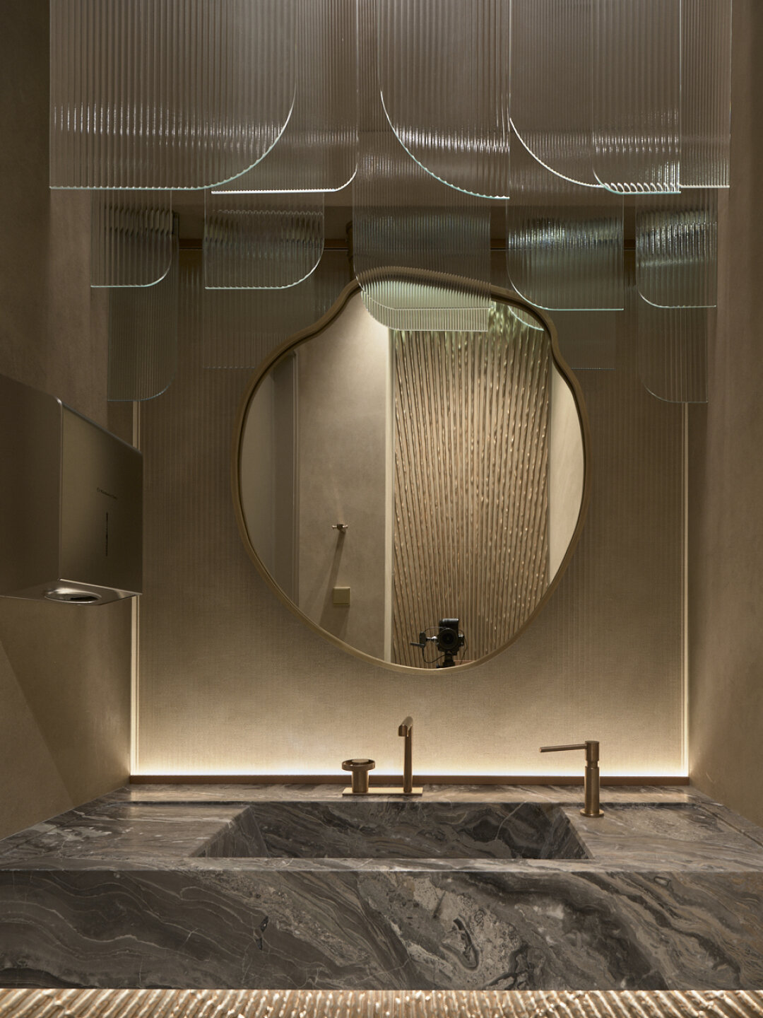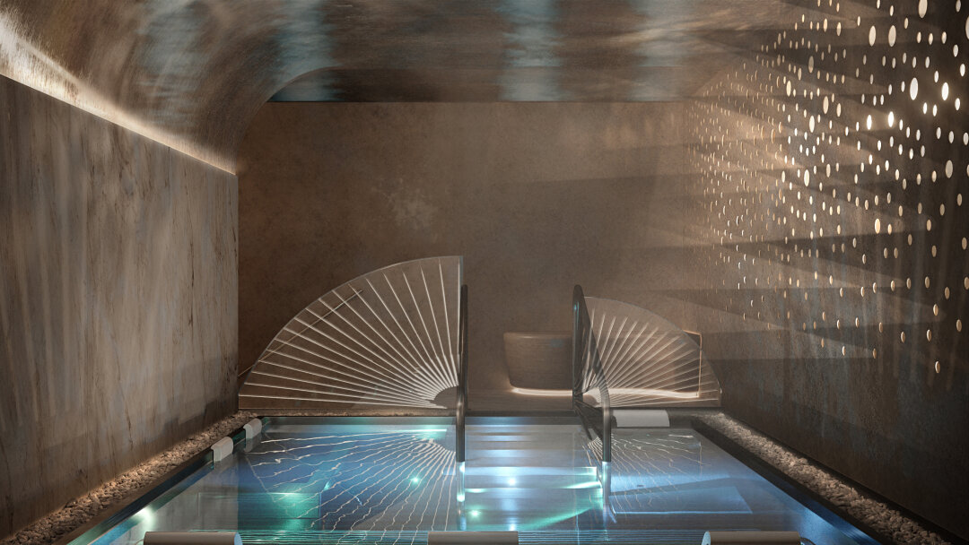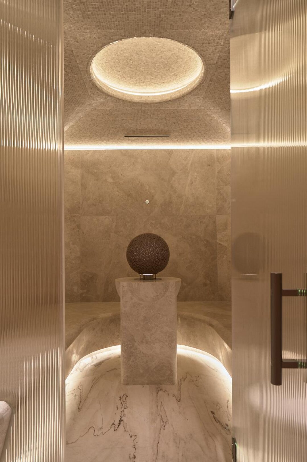 Каждая деталь здесь уникальна: от 45 тысяч гипсовых полусфер, отлитых вручную, до мозаики на полу и ледяной чаши, уникального арт-объекта, создающего центр притяжения в wellness-зоне. Даже свет в спа работает как режиссер, подстраивается под ритм дня и помогает погружаться в нужное состояние.