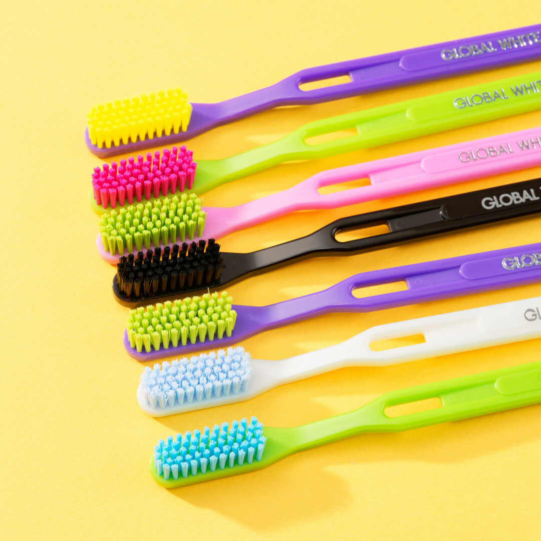 К пасте нужна правильная щетка. Эффективная зубная щетка — это высокотехнологичная щетина, которая очищает, но не травмирует. Hard с повышенной жесткостью подойдет для тех, чьи зубы склонны к образованию зубного камня, Medium — для чувствительных зубов. А Extra c технологичной щетиной Nylon Structure Filaments уже содержит отбеливающие частицы, которые позволяют добиться более заметного результата. Щетки сделаны из экологичного и полностью перерабатываемого пластика.