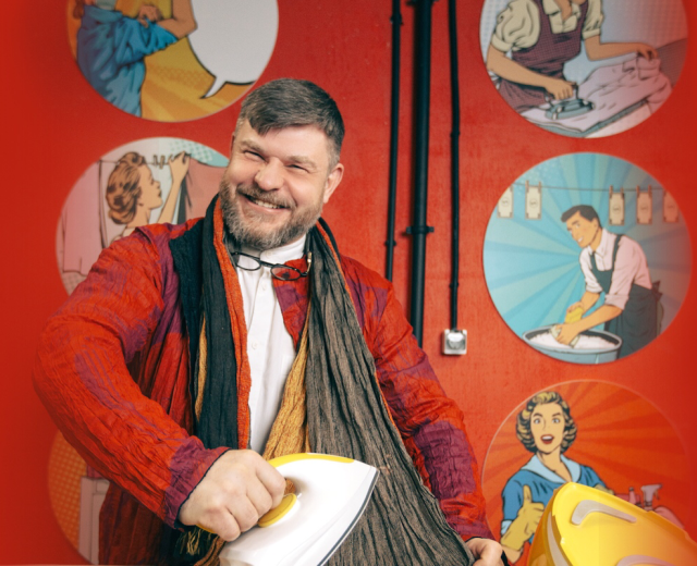 Знакомьтесь, художник Гена Марвин — это он бегал по Петербургу в надувном костюме и вышел на акцию 21 апреля в образе триколора