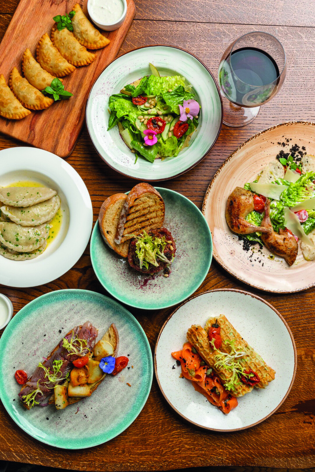 В меню присутствуют национальные блюда из других стран, в том числе паназиатские. Повара активно используют локальные продукты и ингредиенты: кедровые орехи, лесные ягоды, молодые сыры для холодных блюд от сибирских сыроделов и мясо от местных производителей.