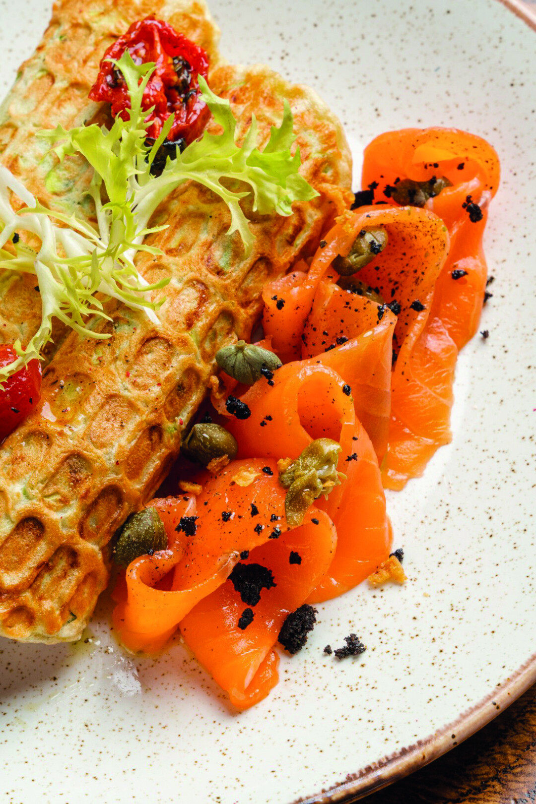 Шеф-повар рекомендует круассаны с маринованным ростбифом или со страчателлой и вареньем из томатов. Не оставят гостей равнодушными сырники с клубничным соусом, блины с мясом, творогом, а еще со сгущенкой, которую готовят прямо здесь. Из основного меню у гостей пользуются спросом салаты, ребра bbq и птитим том ям в стиле ризотто.