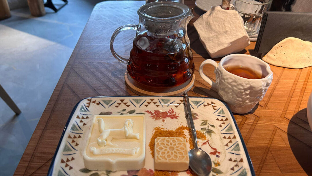 Понравилось, что здесь не было никакого лишнего сахара (кроме естественной сладости молока). Только хороший терпкий кофе, крепкая пушистая пена и мягкий вкус кедровых орешков: дробленые ядра. Их (как мне сообщил официант) разминали вручную. И это как бы здорово, но куски получаются крупными — в этом есть неудобство: хочешь кофе, хочешь его просто пить, а приходиться еще жевать при каждом глотке. Это кажется мне странным. Но в целом понравилось.