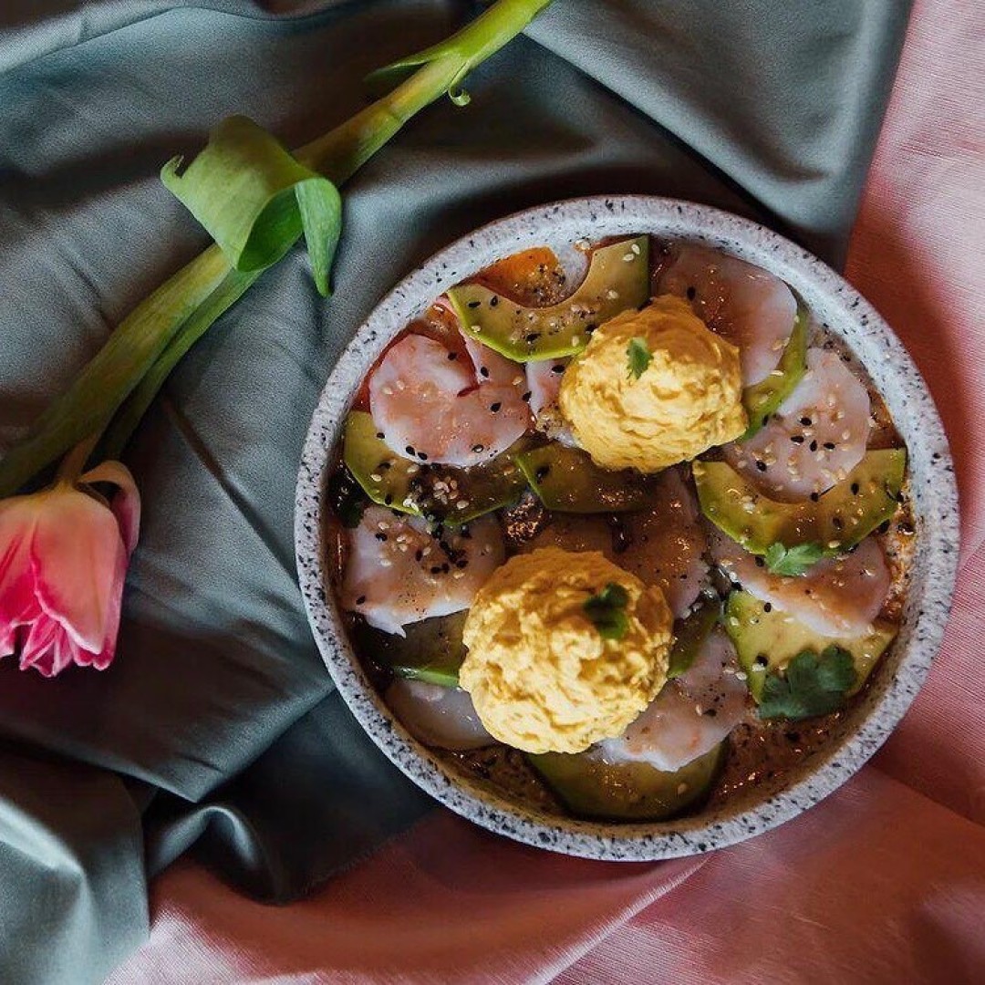 33 Wine&Tapas bar - поддерживают вечера со вкусом и с помощью необычных закусок. В меню появились маринованные креветки с нежным авокадо в сочетании с воздушным муссом из кокоса и манго.