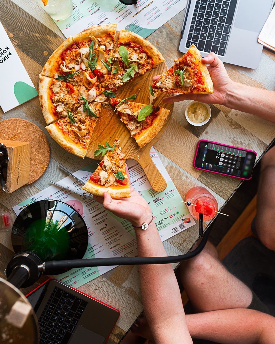 Яркой новинкой стала и пицца с пастрами из индейки и карамельным луком. Новые закуски, бургеры, горячее. Без утонченных изысков. Для всех. Основной акцент повара сделали на легких блюдах из морепродуктов и низкокалорийной птице.