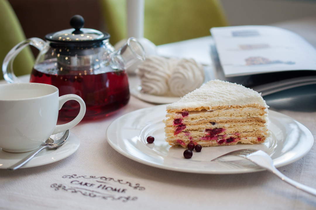C детства люблю классический рубленный торт со сгущенкой, нравится наша новинка — меренговый рулет с фисташкой и с малиной. А еще есть торт «Вкус детства», мы вводим его в меню — двоюродная бабушка его пекла.