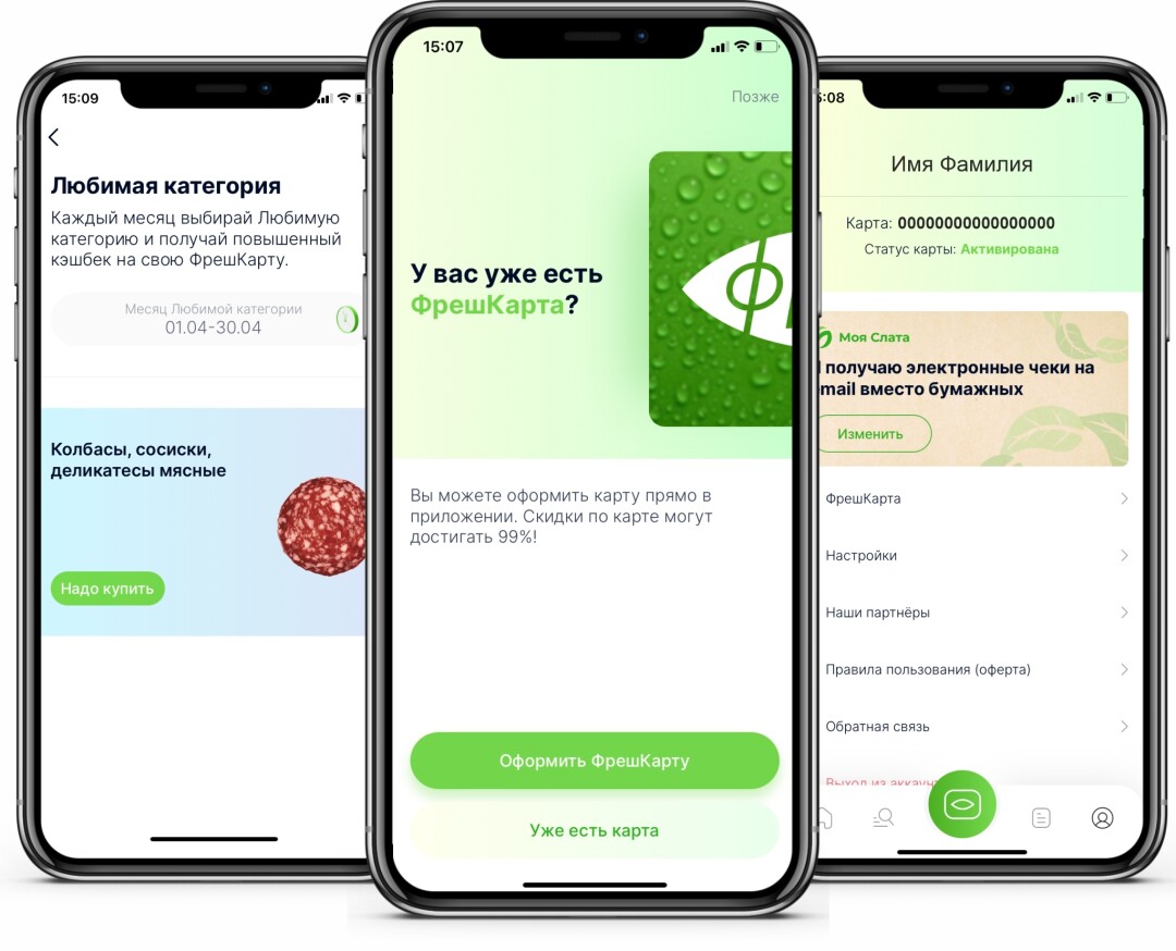 - ФрешКарта теперь всегда под рукой – возможность бесплатно получить виртуальную карту в приложении или привязать уже существующую карту.