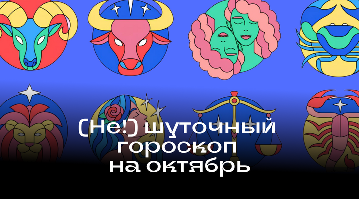 Девы переходят в свою prime эру, Скорпионам придется брать ответственность и идти на компромиссы, Козероги в октябре станут душками, а Овны получат официальное разрешение от звезд на агрессию и прямолинейность. Как восстановить ресурсное состояние Водолеям и почему Рыбам не стоит «плыть по течению» — читайте в нашем (не!) шуточном гороскопе, под эгидой которого мы проведем следующий месяц.