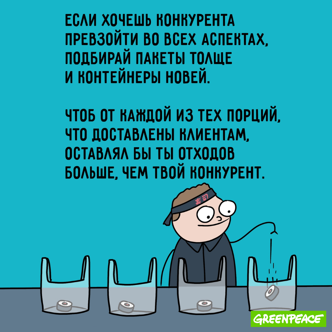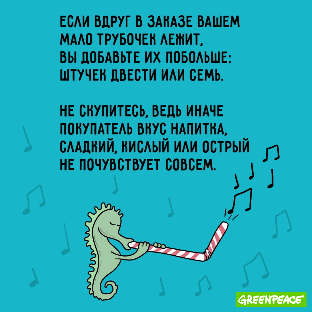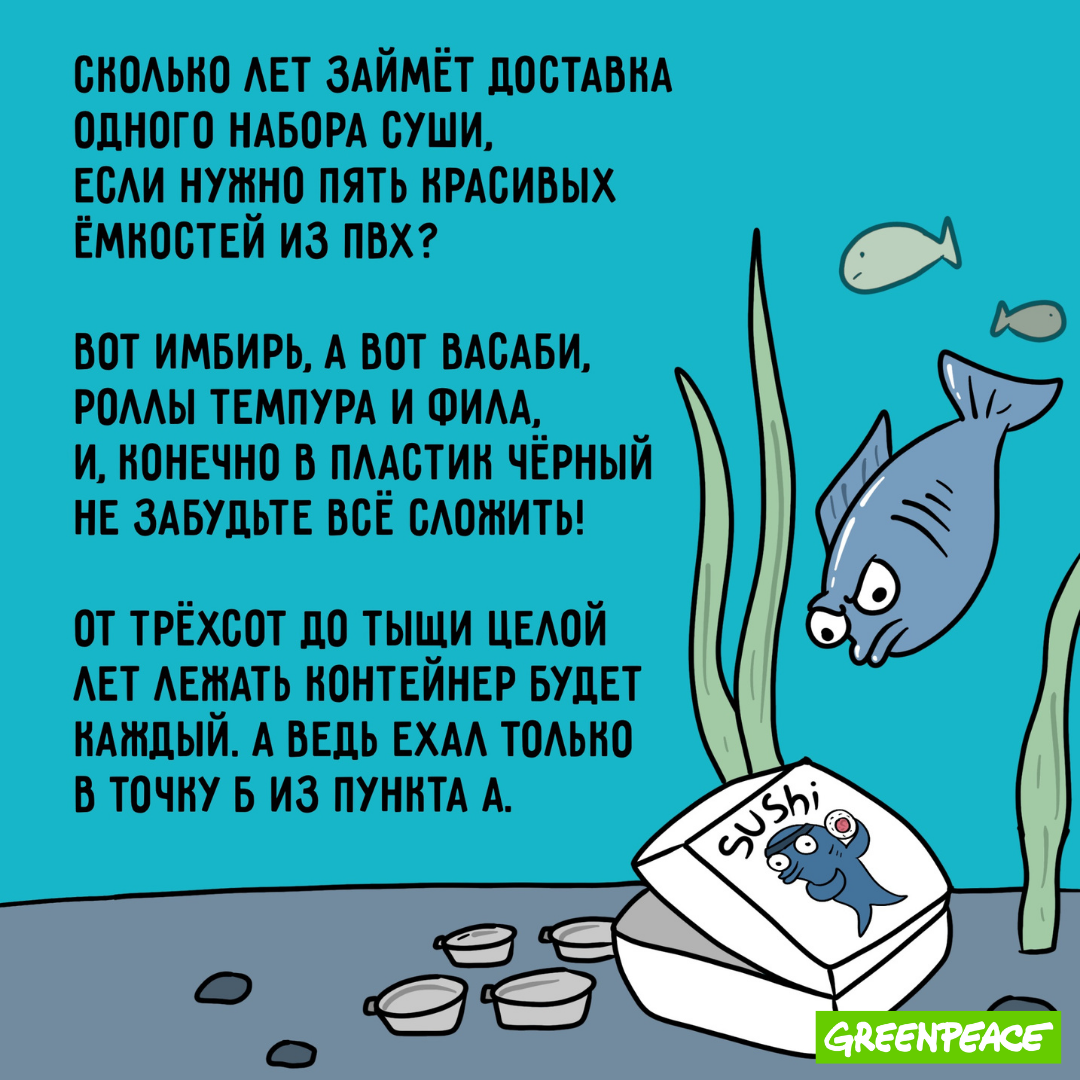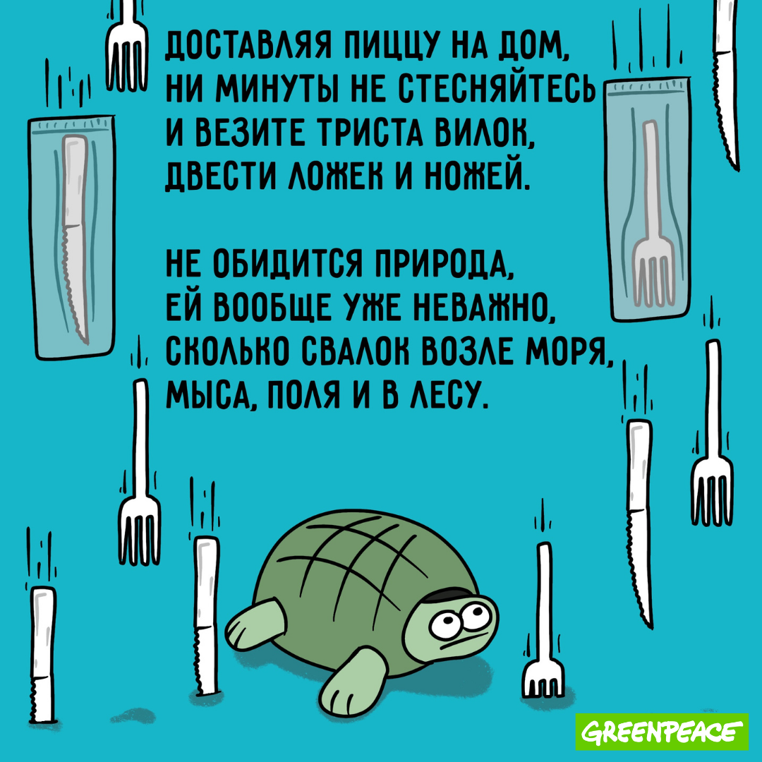 В поддержку проекта Greenpeace выпустил антирекомендации доставке в стиле «вредных советов». Как рассказали «Собака.ru» в российском отделении организации, в шуточных стихотворениях экологи высмеивают пристрастие к одноразовому пластику, которое доставка привозит вместе с едой, и призывают сервисы об этом задуматься.