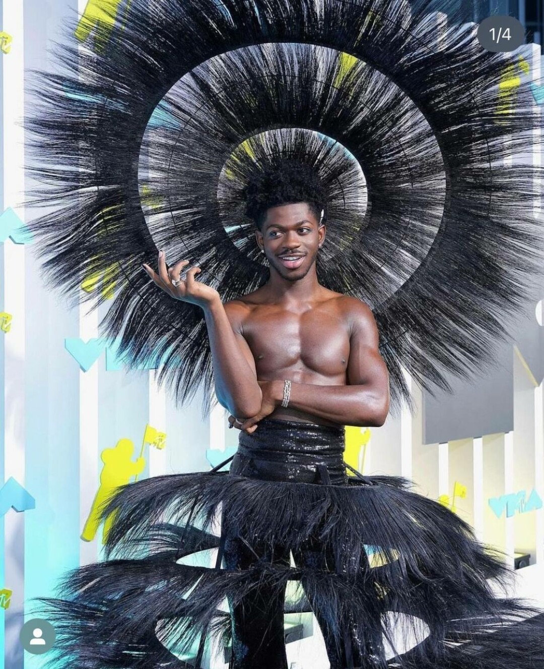 Lil Nas X порадовал нас образом от Harris Reed. Вот только это мы уже видели. Сначала в 86-м у Шер на Оскаре, а затем у Иман на Met Gala в 2021