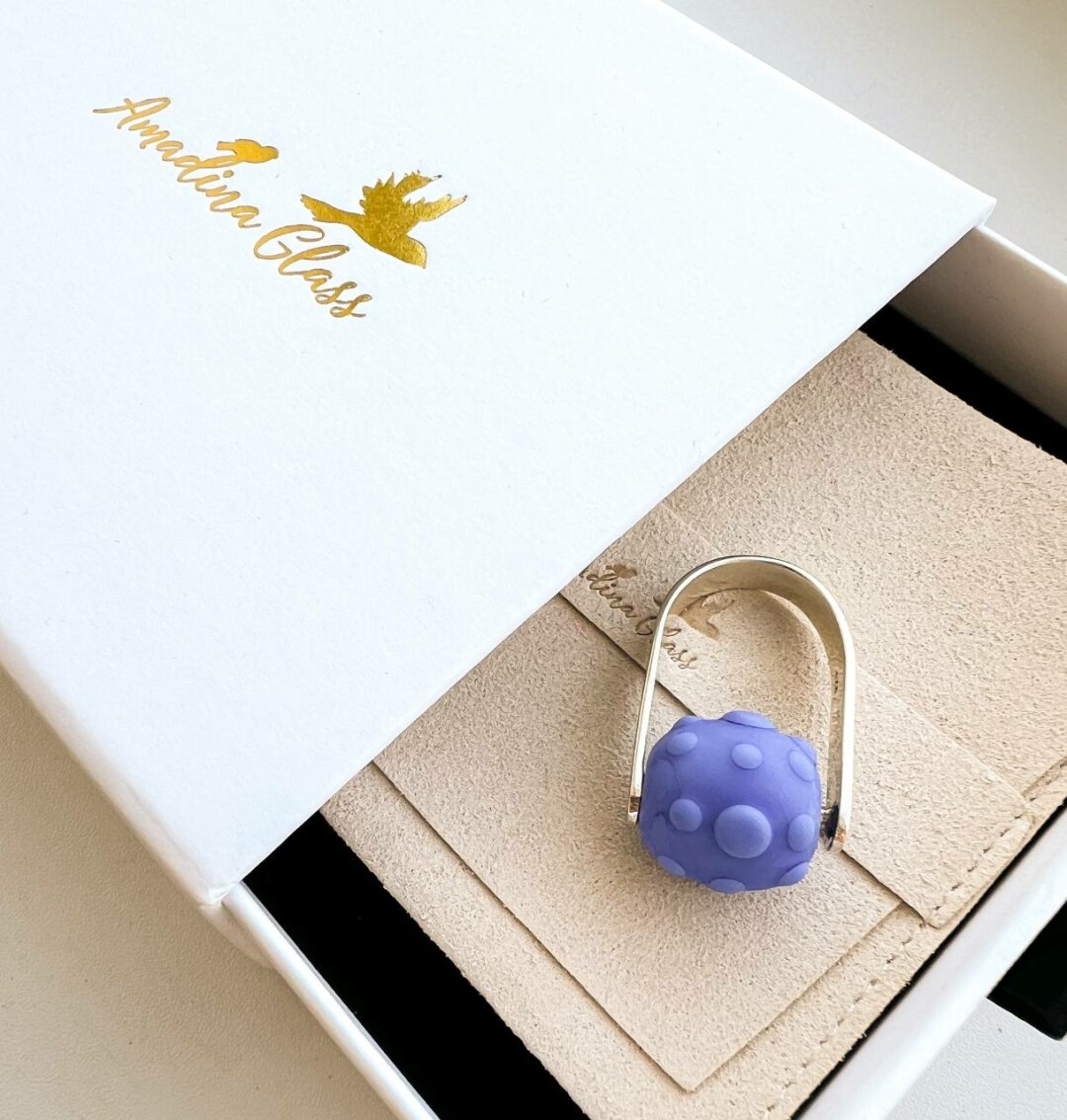 Легендарное кольцо из коллекции “Морские ежи” – это, пожалуй, лучший подарок для креативных, стильных девушек, который подчеркнет их образ. Выполнено из серебра и ювелирного стекла. Изделие с “секретом”, потому что включает в себя еще серьгу и кулон. В одном подарке сразу три вещи.